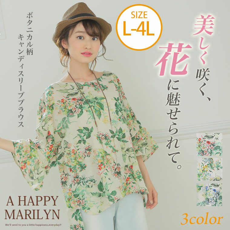 優しいボタニカルな花柄が落ち着いた大人可愛さを演出。キャンディスリーブブラウス