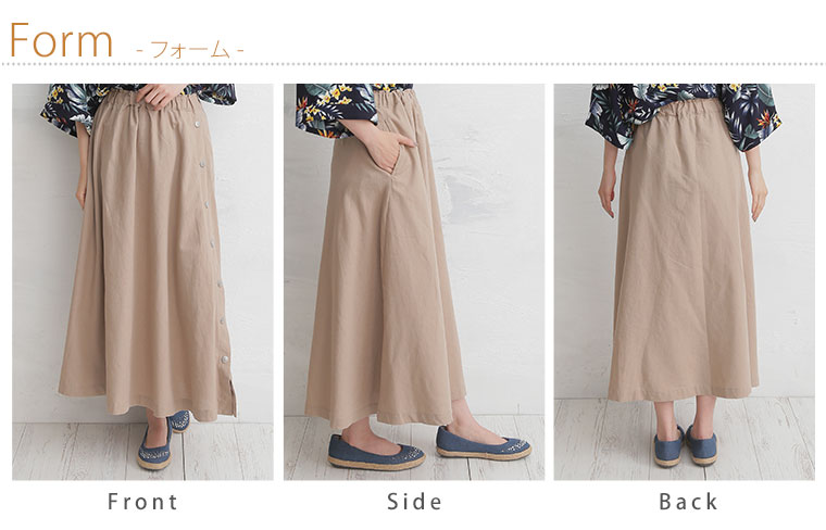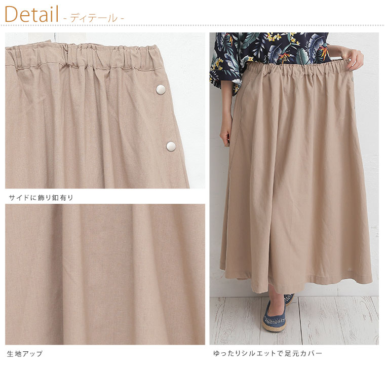 3. 大きいサイズ サイドボタン ロング丈 フレアスカート