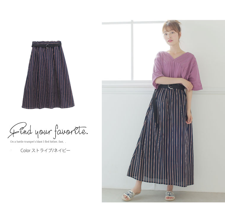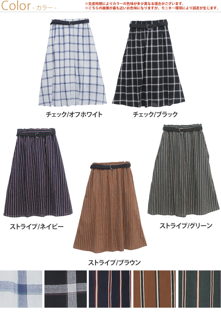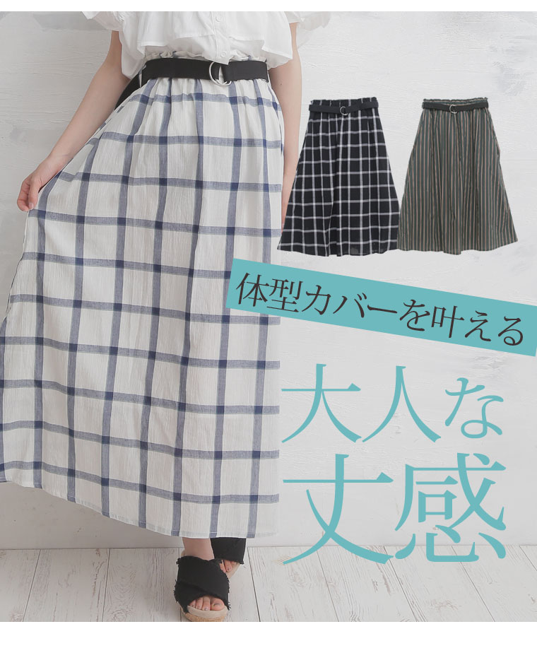 3. 大きいサイズ チェック ストライプ 選べる ベルト付き スカート
