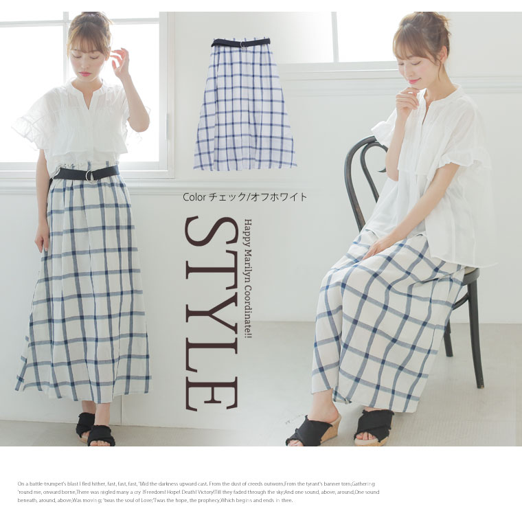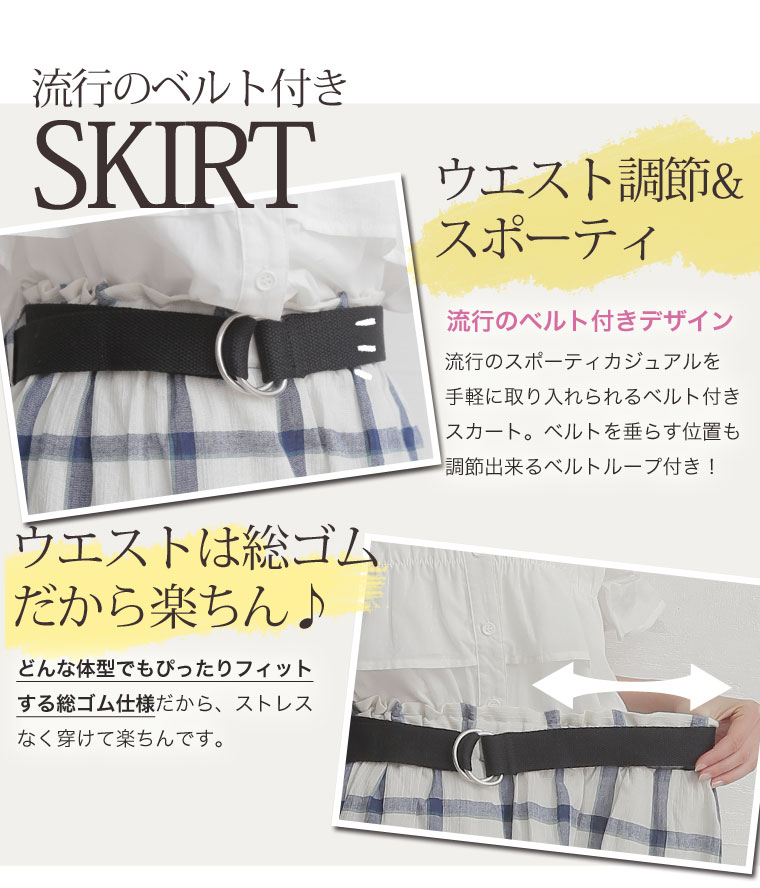 4. 大きいサイズ チェック ストライプ 選べる ベルト付き スカート