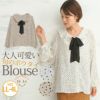 フリル襟が華やかなアクセント!!旬のボウタイデザインドットブラウス