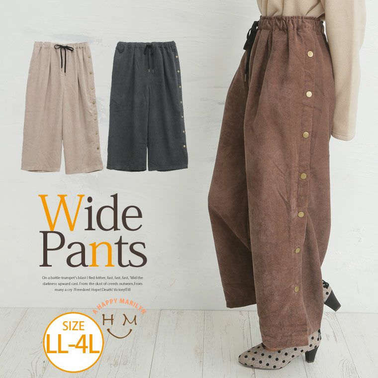 サイドボタンデザインで個性派スタイル!!ゆったりワイドパンツ