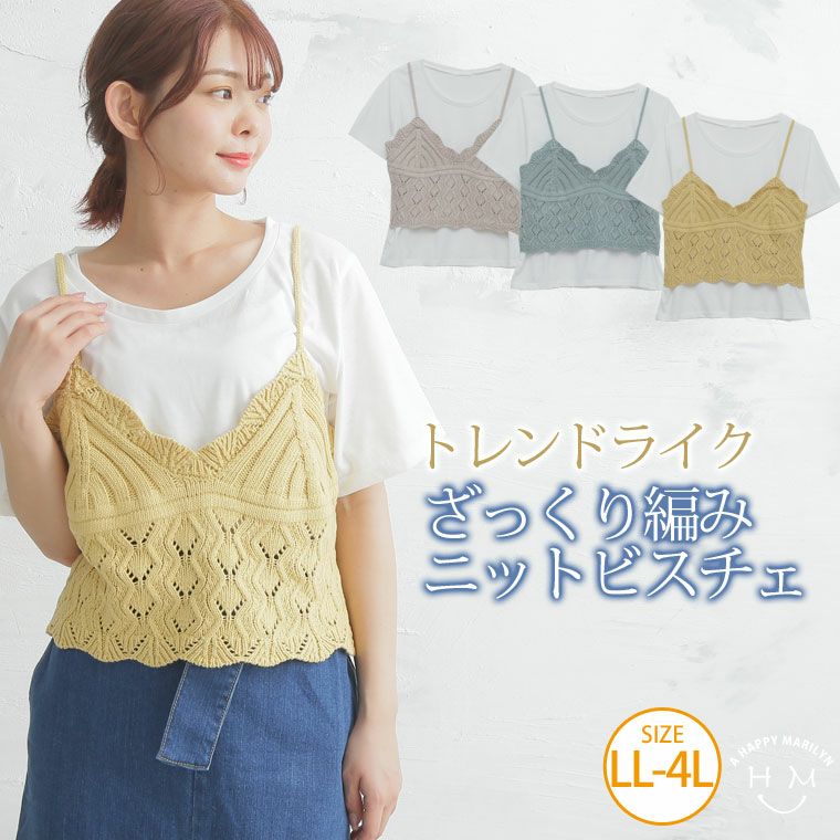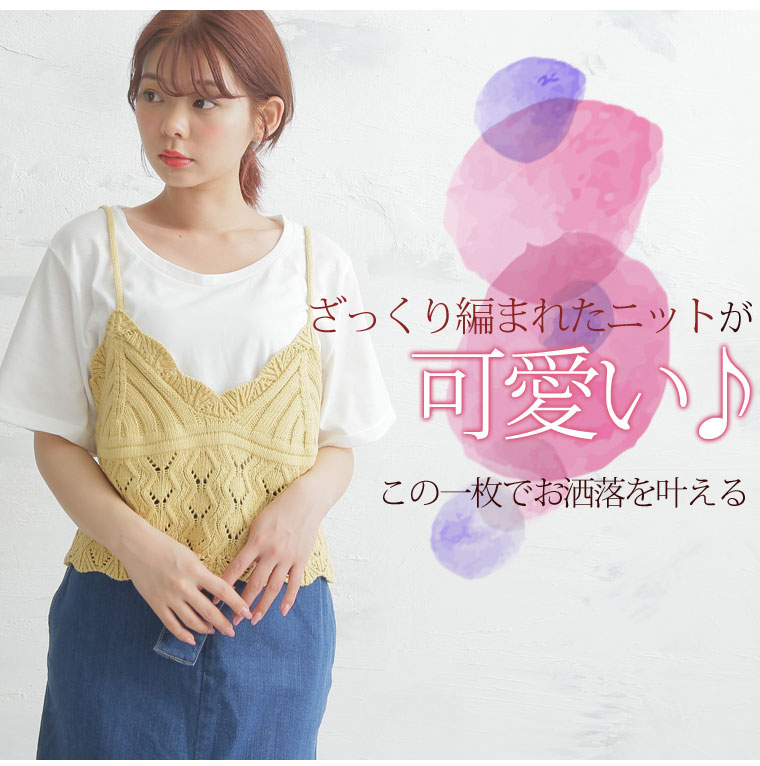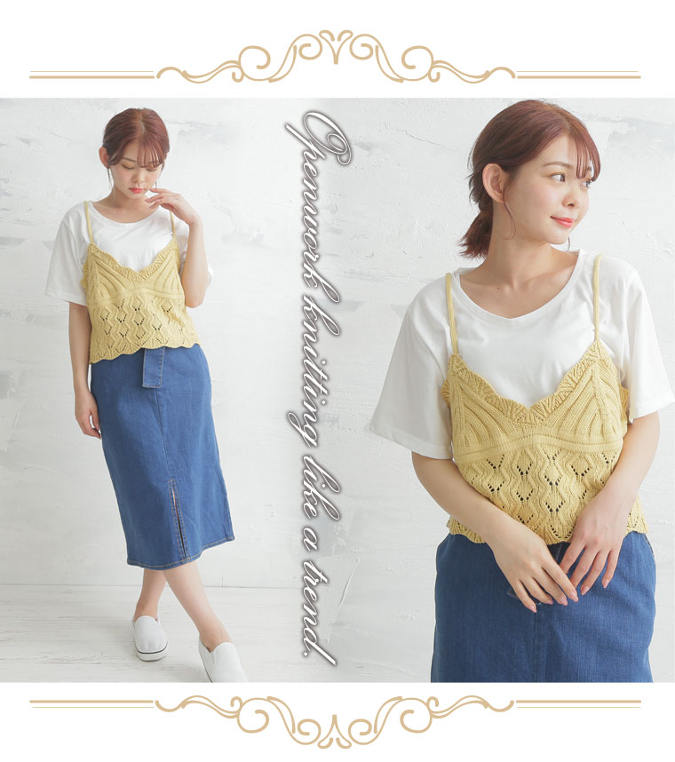 嬉しい2点セット!編みニットビスチェアンサンブル