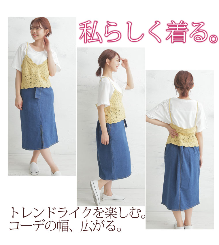 さらりとした肌触りのインナーと綿100%のビスチェセットだからコーデに困らない♪