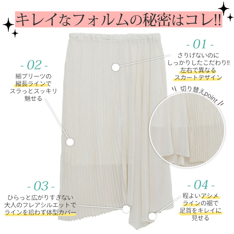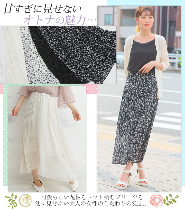 可愛らしい花柄も、ドット柄も、プリーツも。幼く見せない美シルエットデザイン