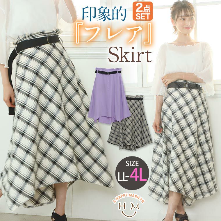 チェックとパープルから選べるフレアスカート