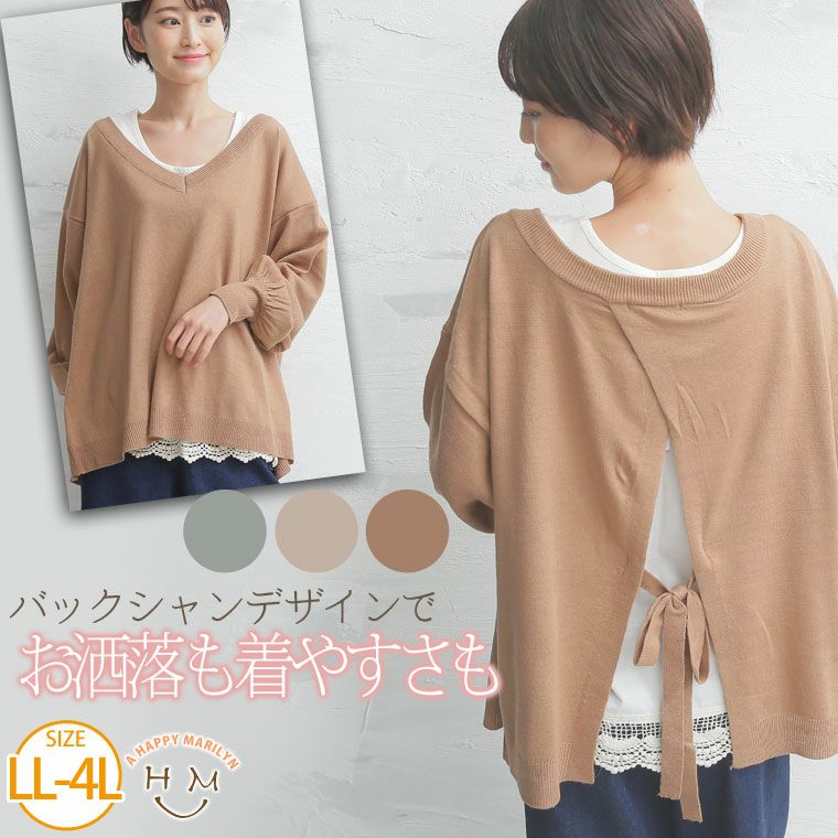 バックリボンでこなれ感UP♪ぽわん袖リボンバックジャンニット