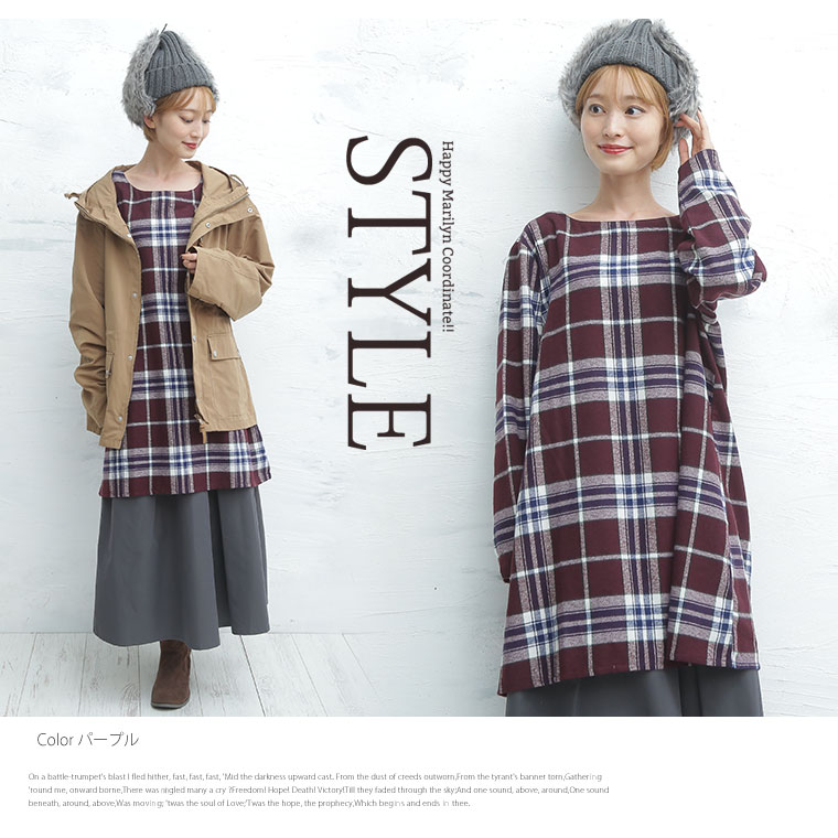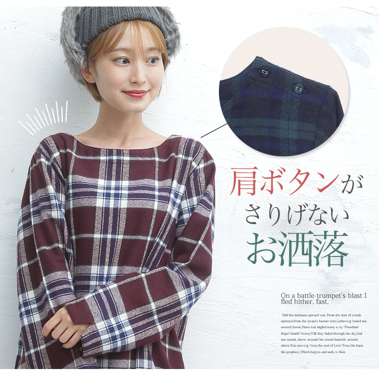 ワンピ デザインワンピ LL 3L 4L 秋 秋物 秋服 冬 冬物 冬服 ぽっちゃり ゆったり かわいい おしゃれ カジュアル ナチュラル 長袖 肩ボタン デザイン チェック ワンピース
