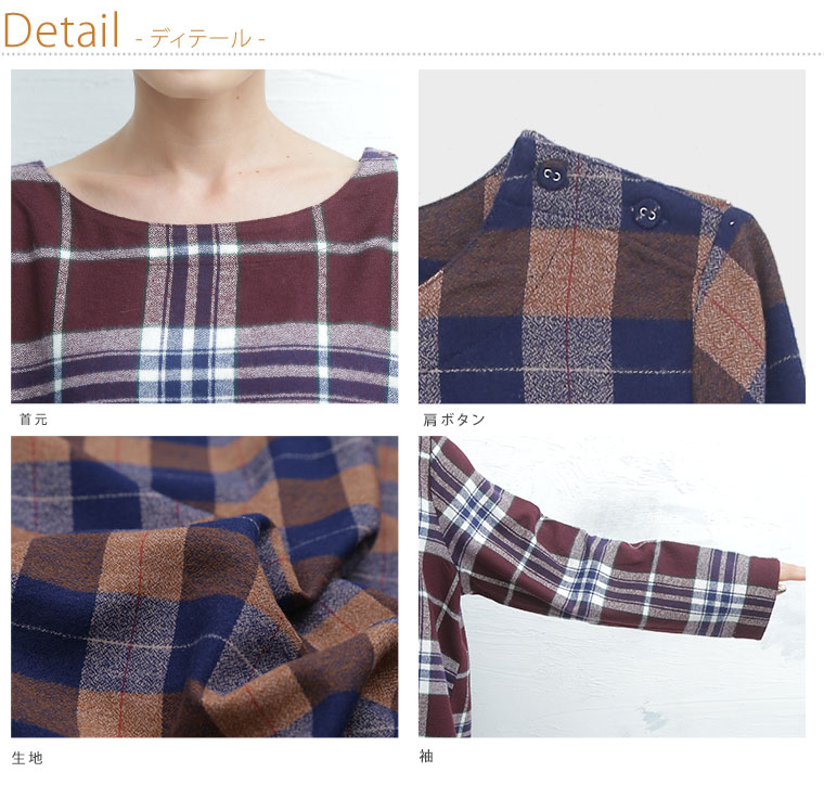 4. 大きいサイズ 肩ボタン デザイン チェック ワンピース