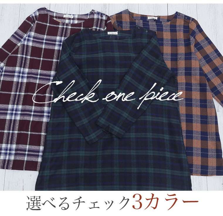 選べるチェック3カラー!肩ボタンがポイントのワンピース