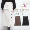 ボタンを並べたデザインがお洒落なポケット付きベルトスカート