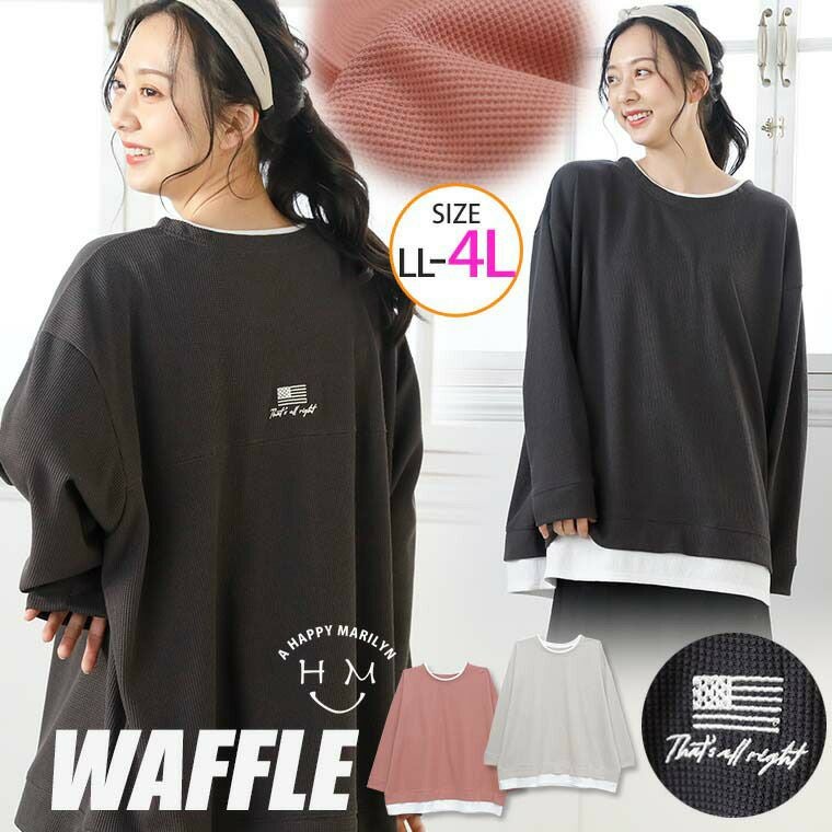 ワッフル生地でさらりと着れる!1枚で重ね着風プルオーバー