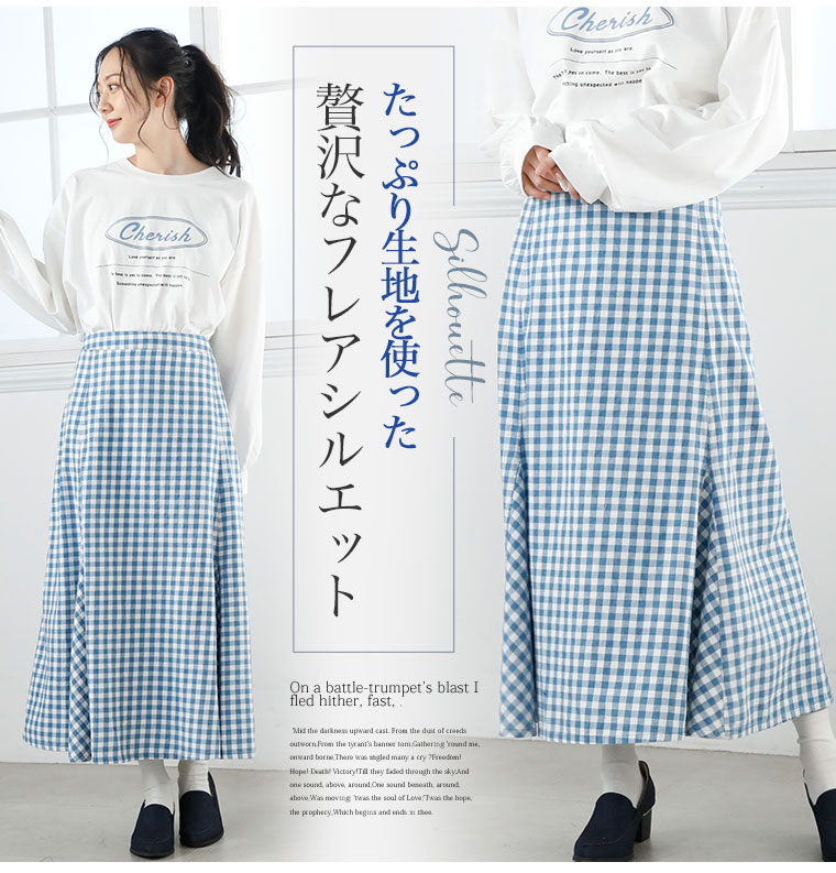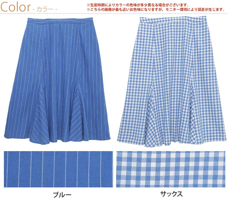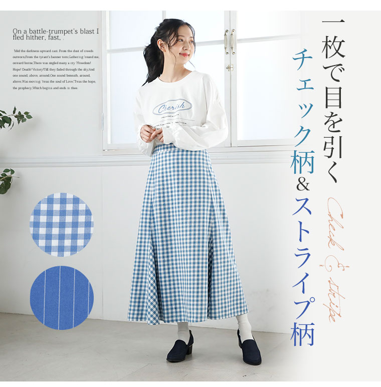 1枚で目を引くチェック柄とストライプ柄フレアスカート