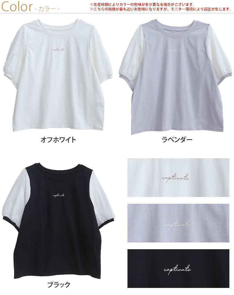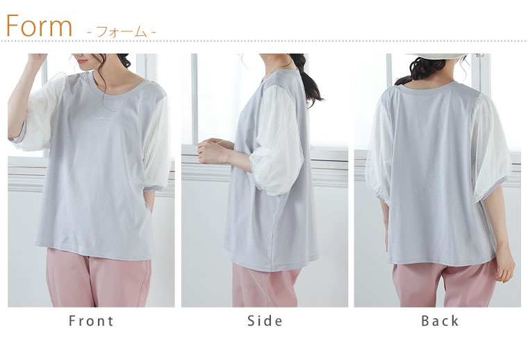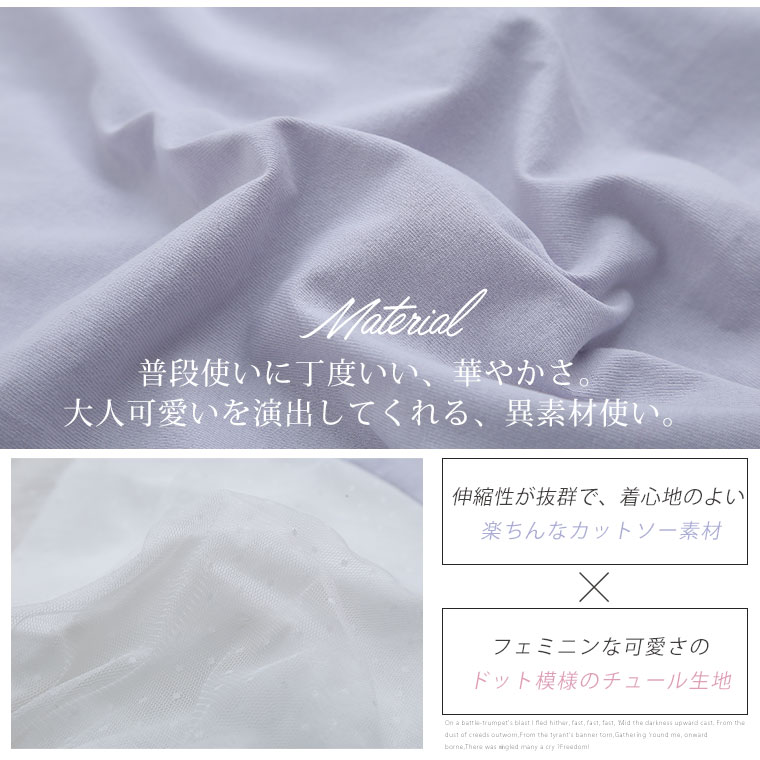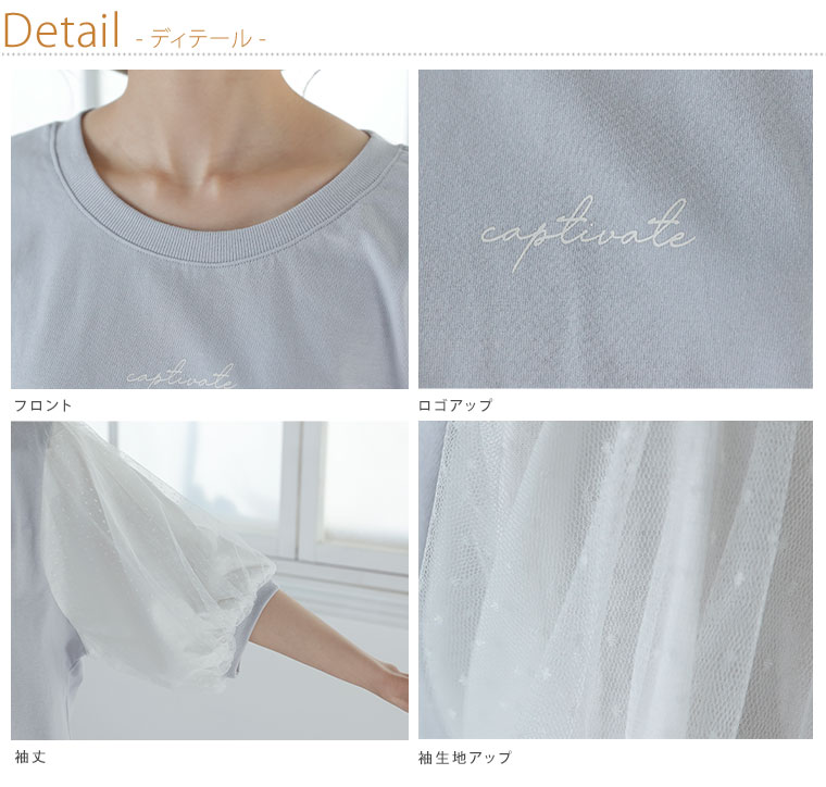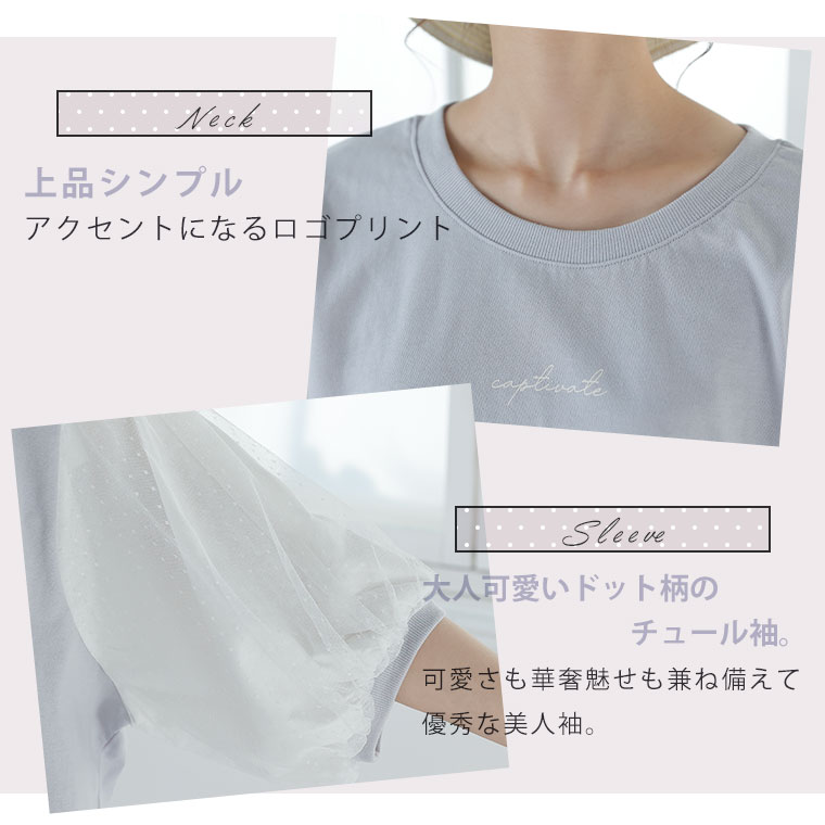 ふわっと可愛いドット柄チュール袖 × 上品シンプルなロゴ刺繍