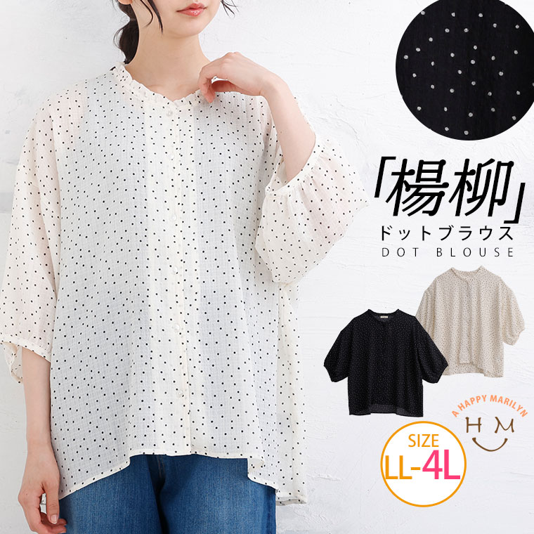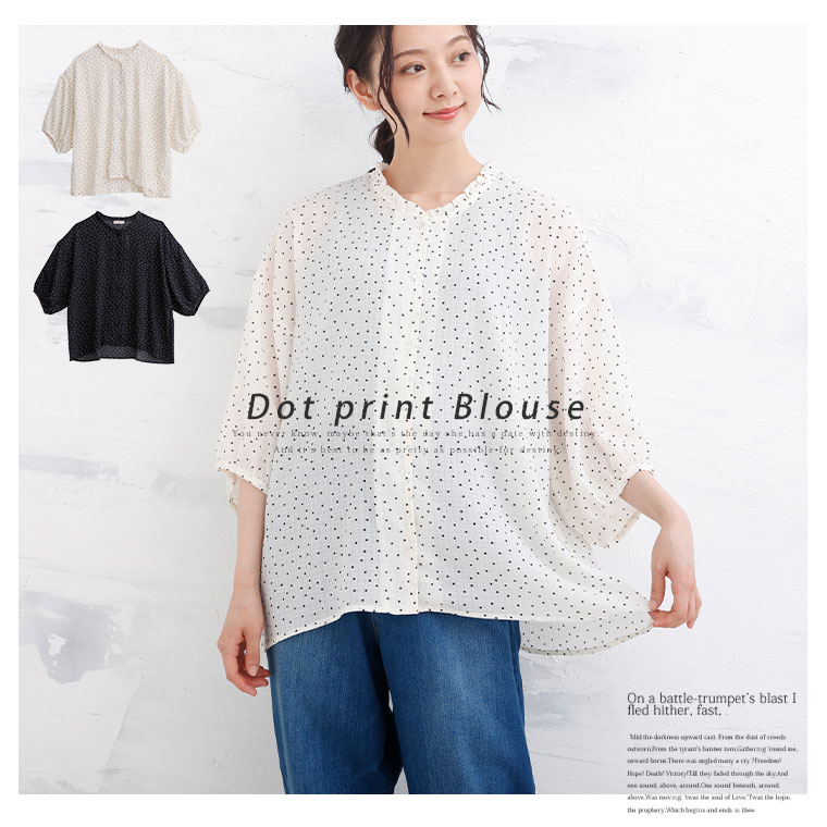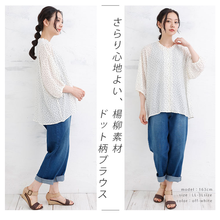 楊柳生地の涼しげドットブラウス