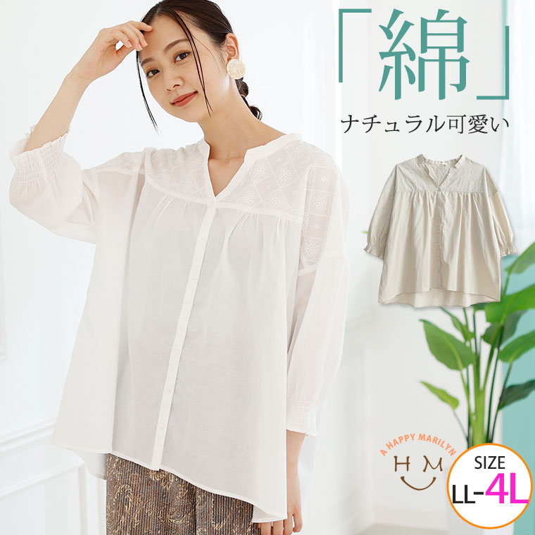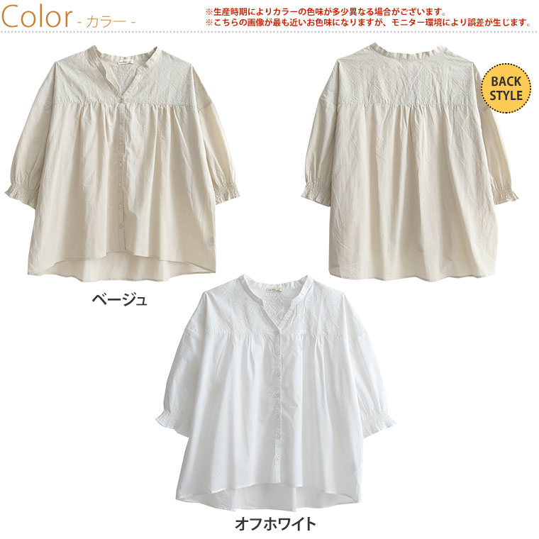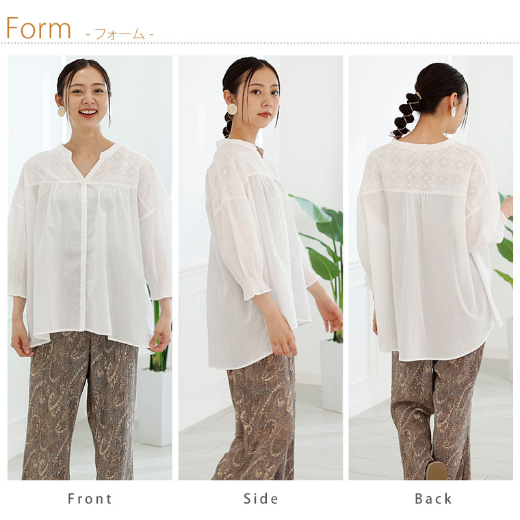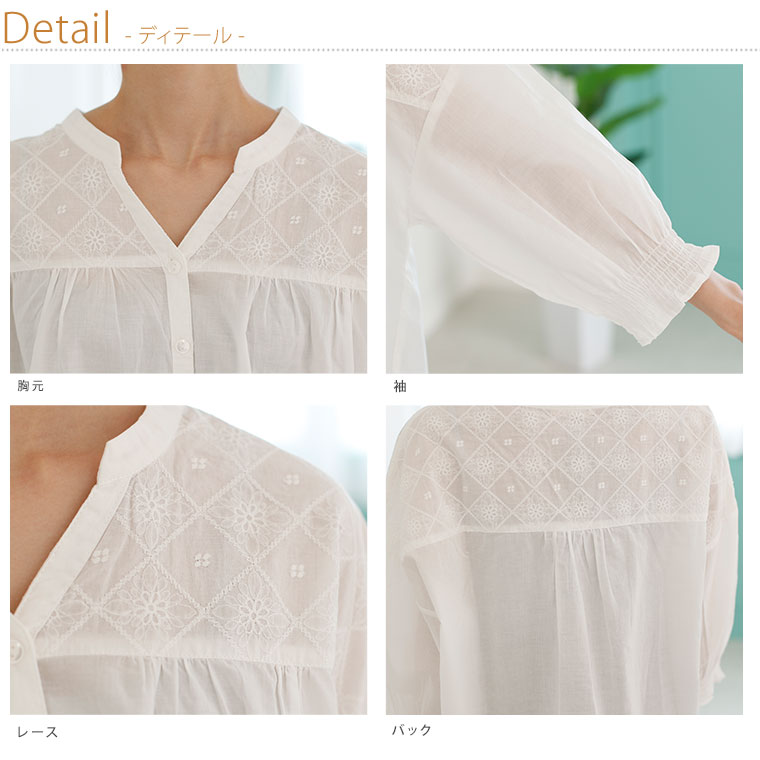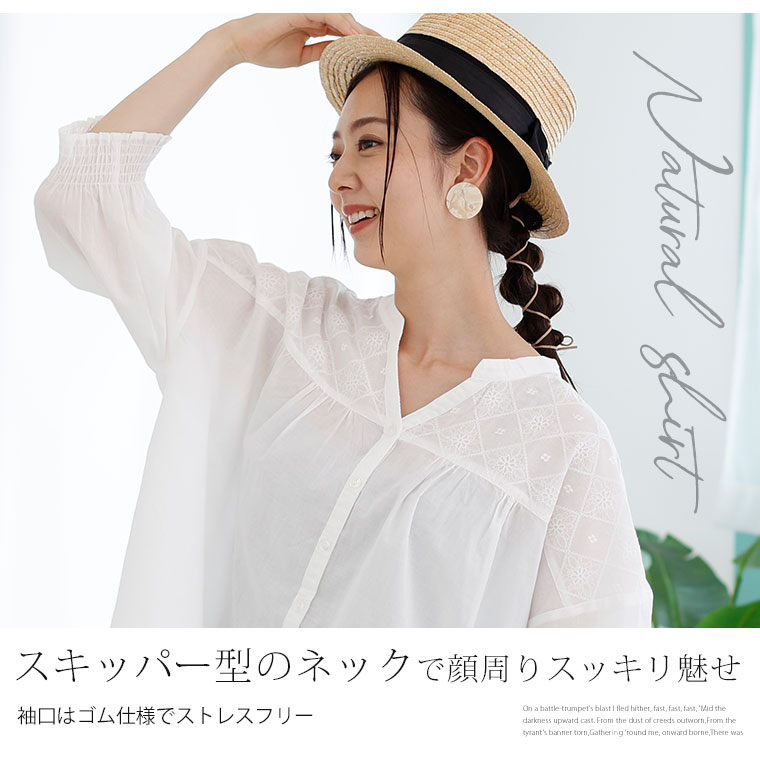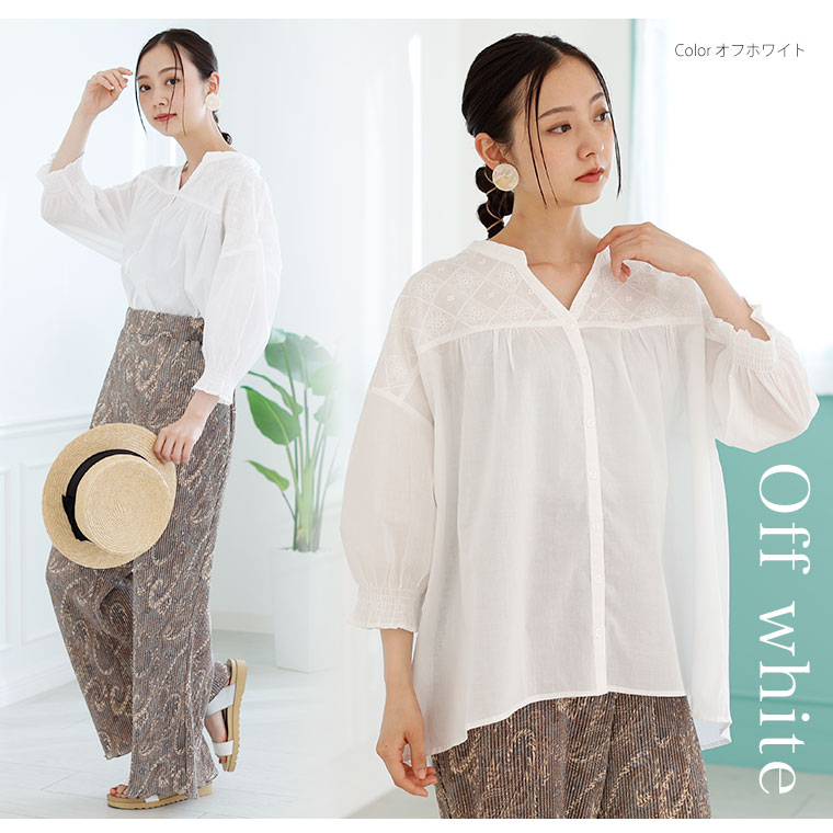 花柄刺繍がポイントの贅沢ナチュラルブラウス