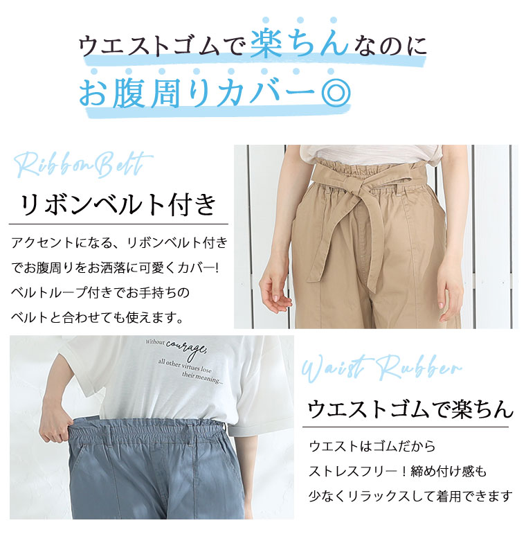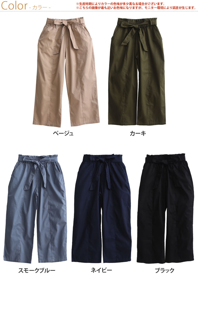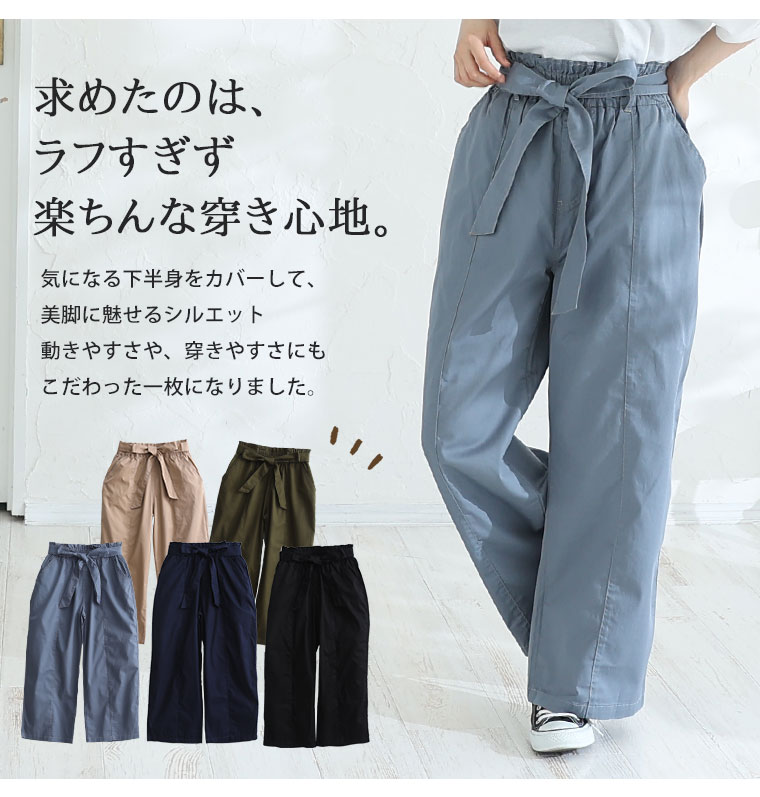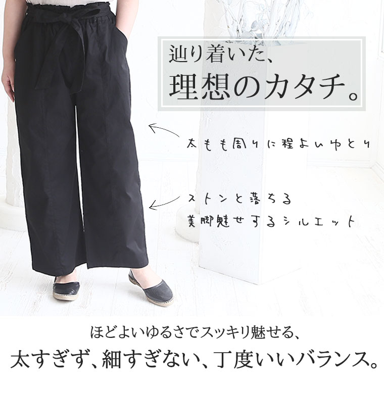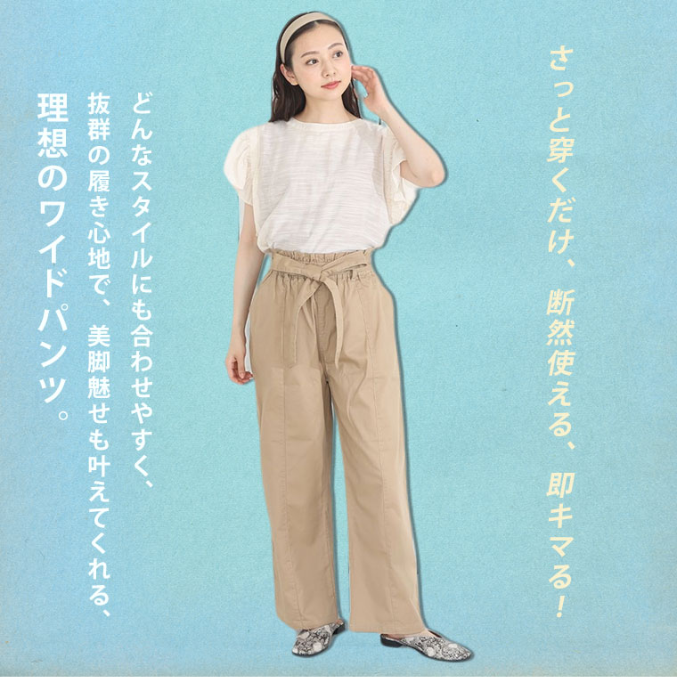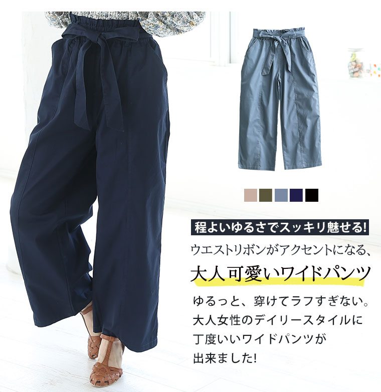 ウエストリボンがアクセントのワイドパンツ
