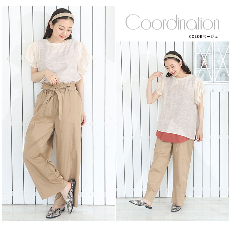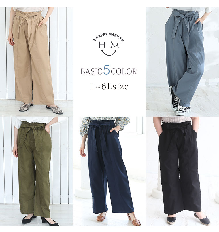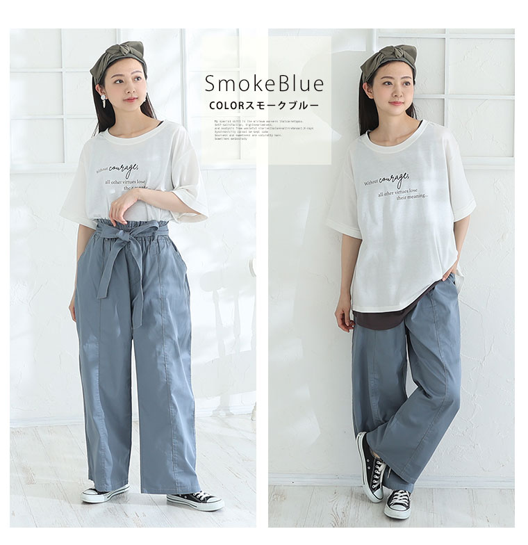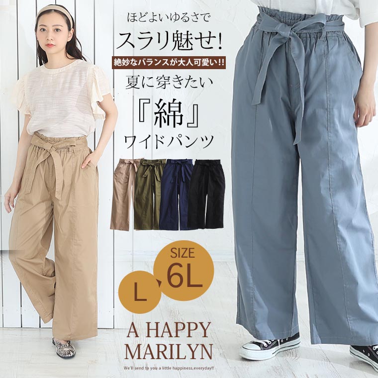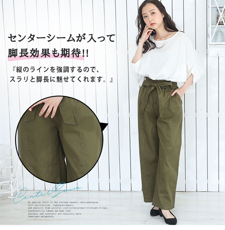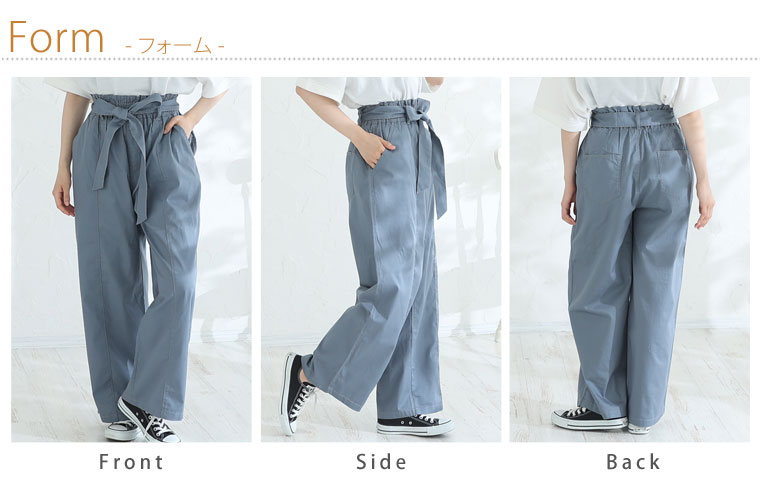 ウエストリボンがアクセントのワイドパンツ