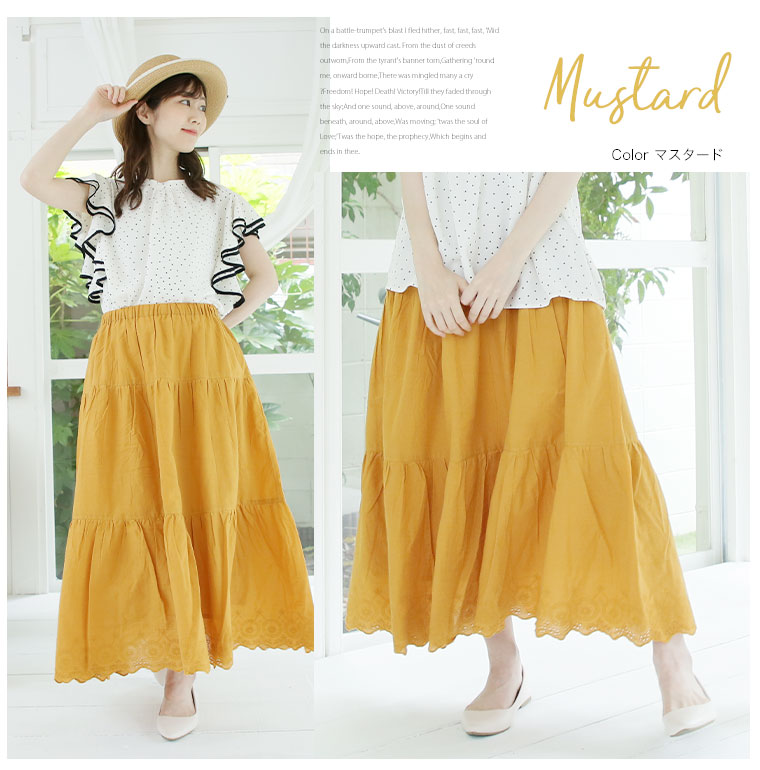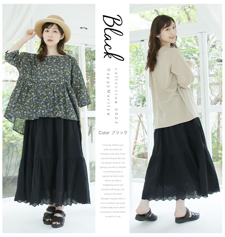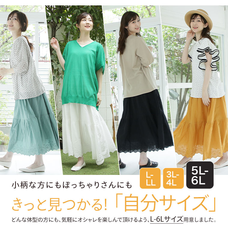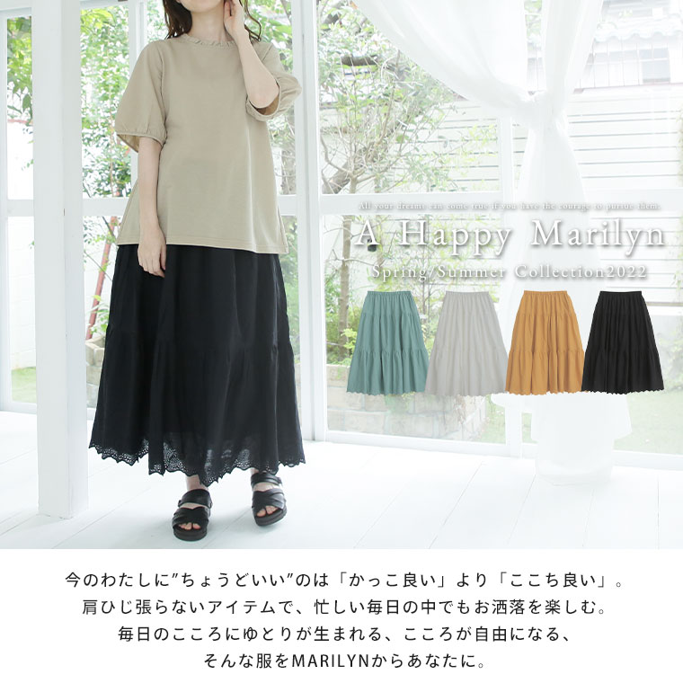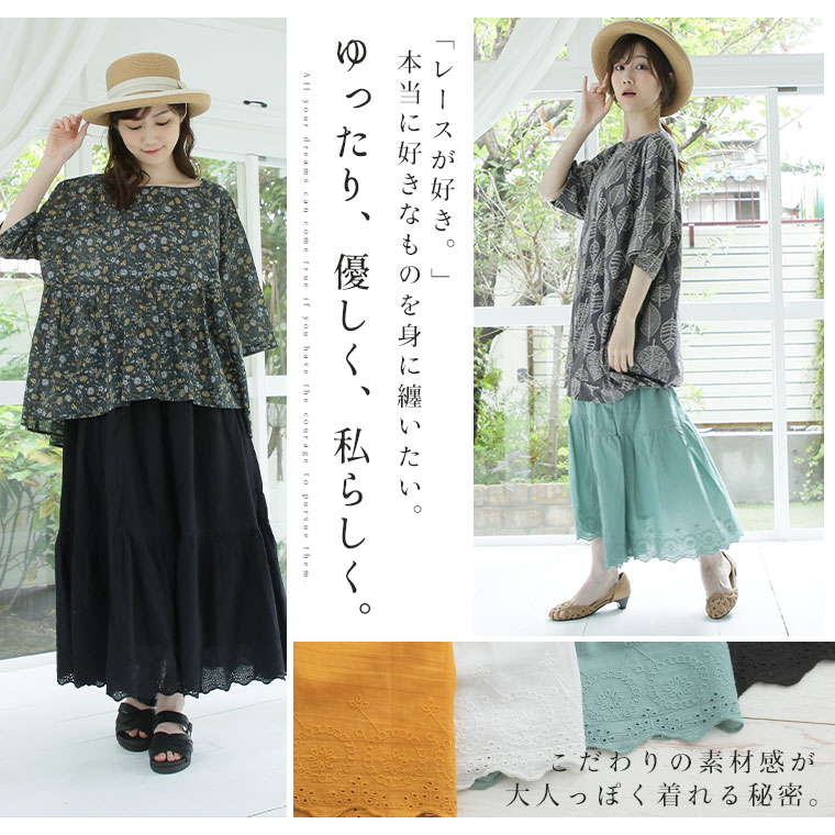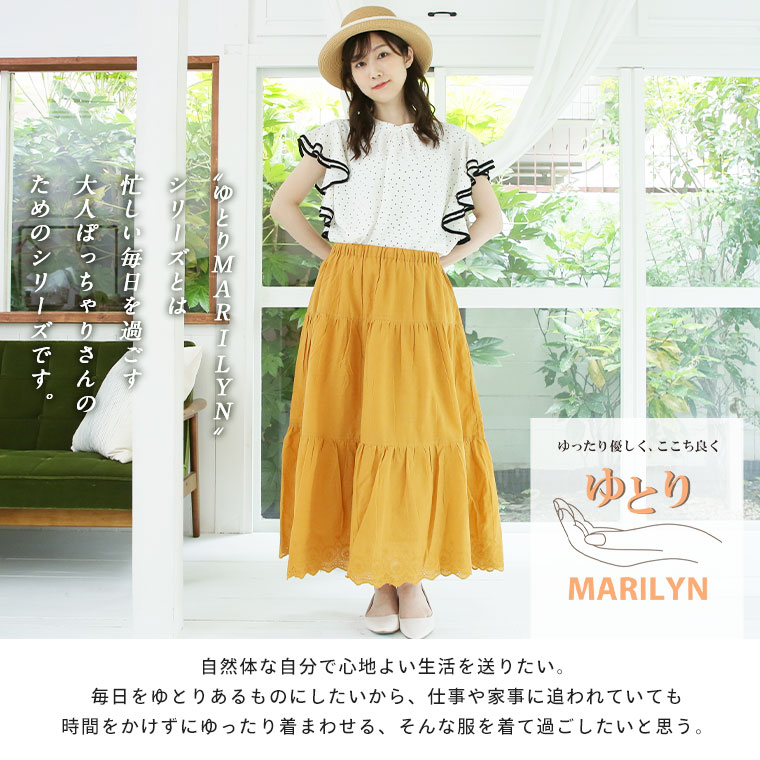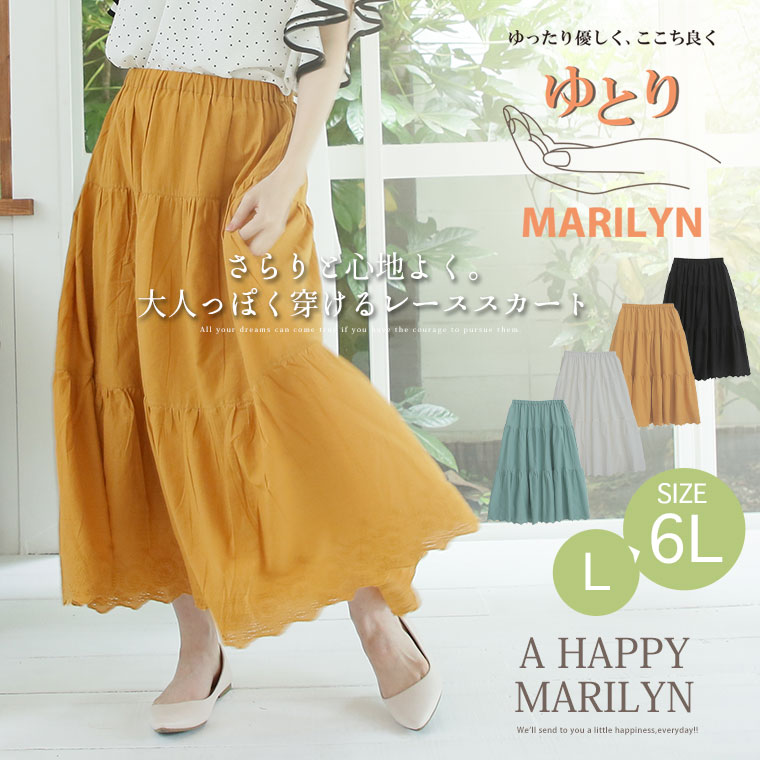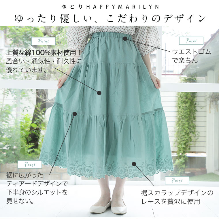 ゆとりMARILYN 綿100%レースロングスカート