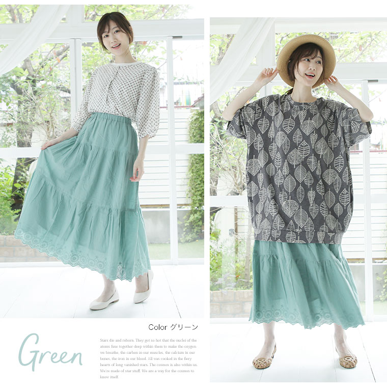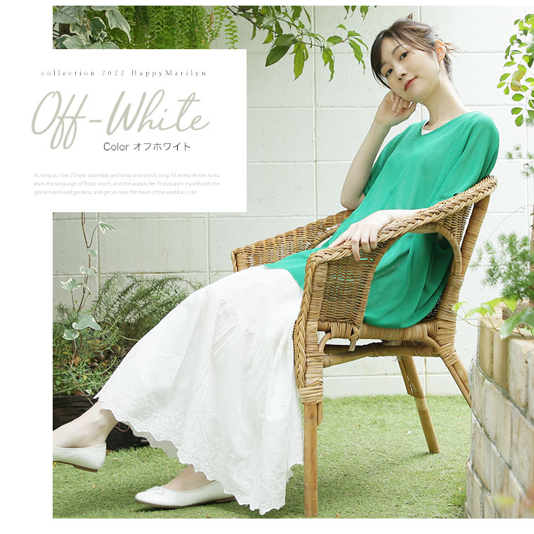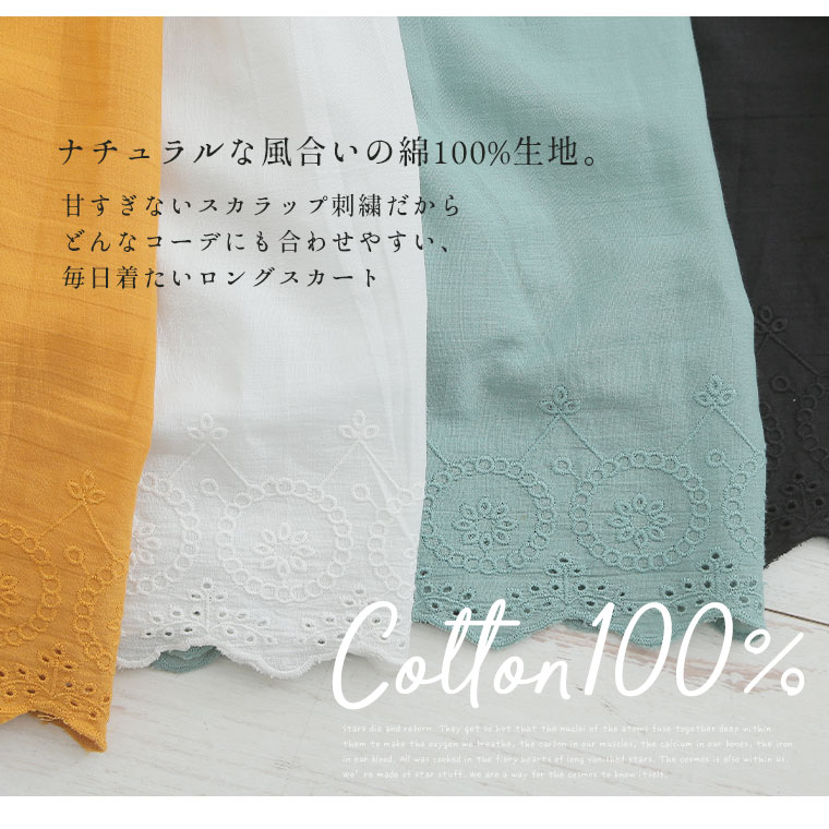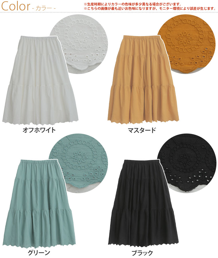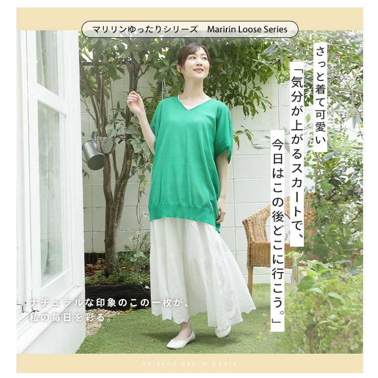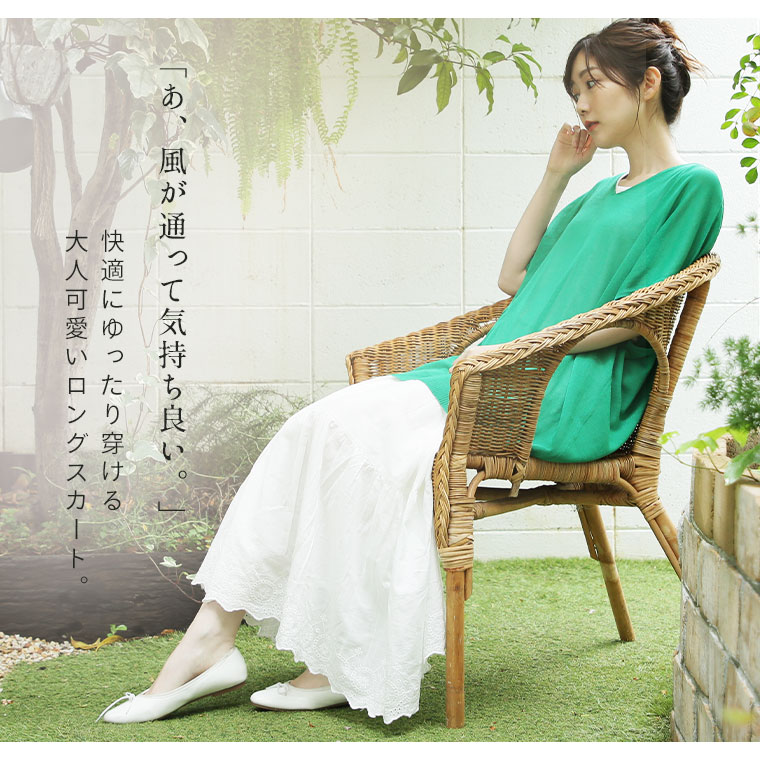 ゆったり優しい 大人っぽく穿けるスカラップ刺繍