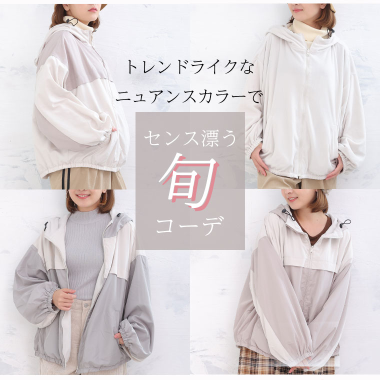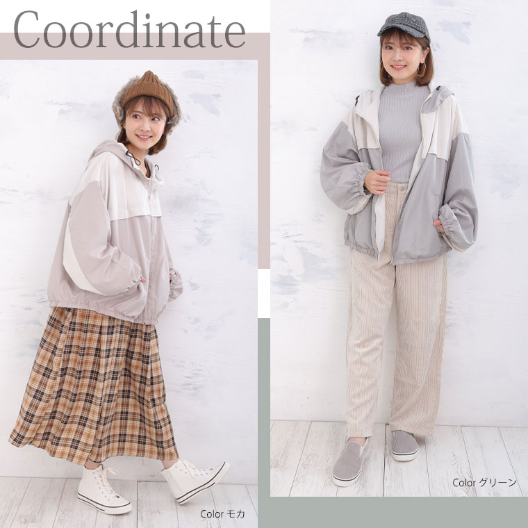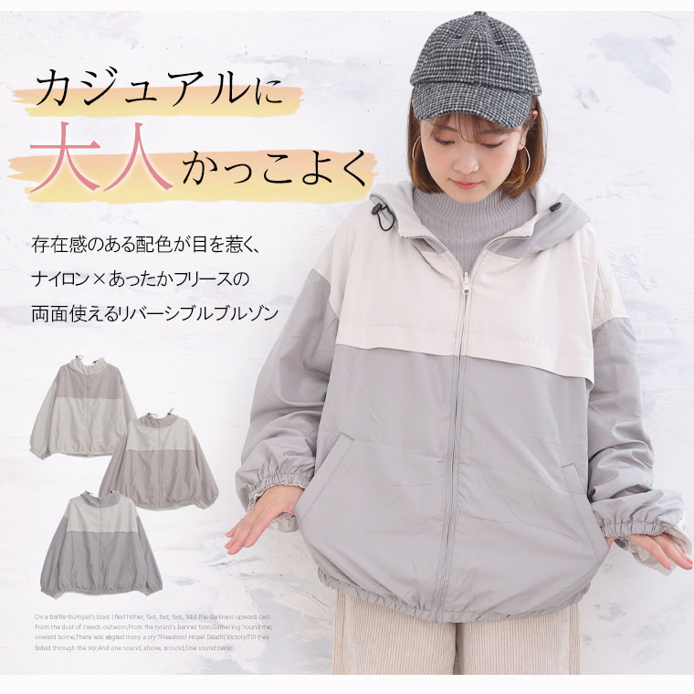 優しい配色カラーで大人も着やすい 配色裏フリースブルゾン
