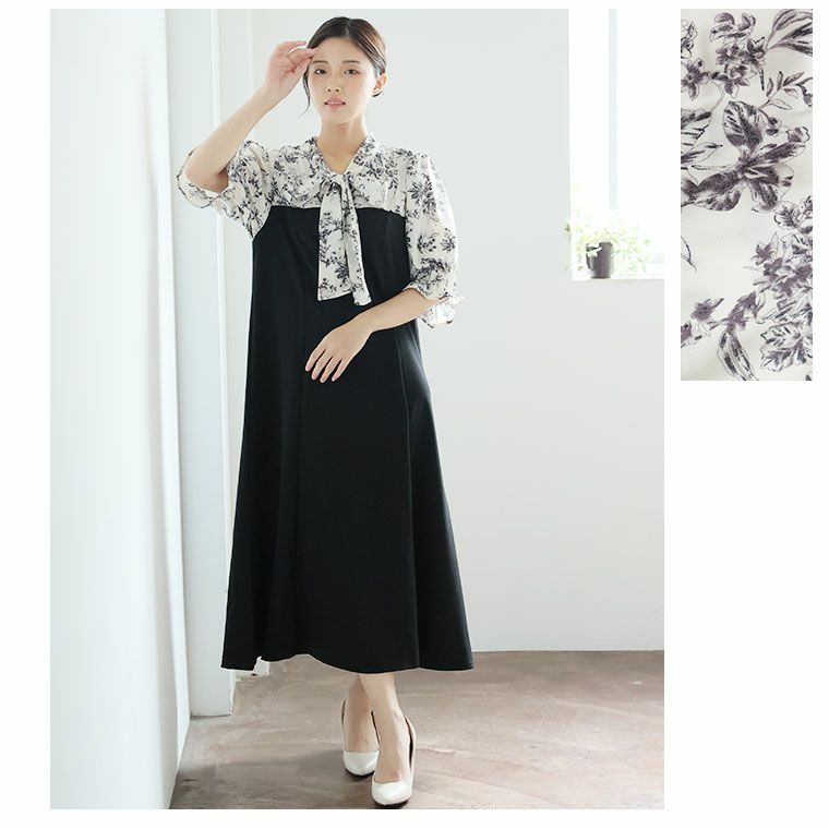 しっかりストレッチで楽かわ! 異素材 ドッキングワンピース