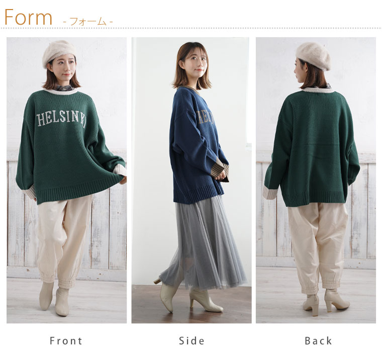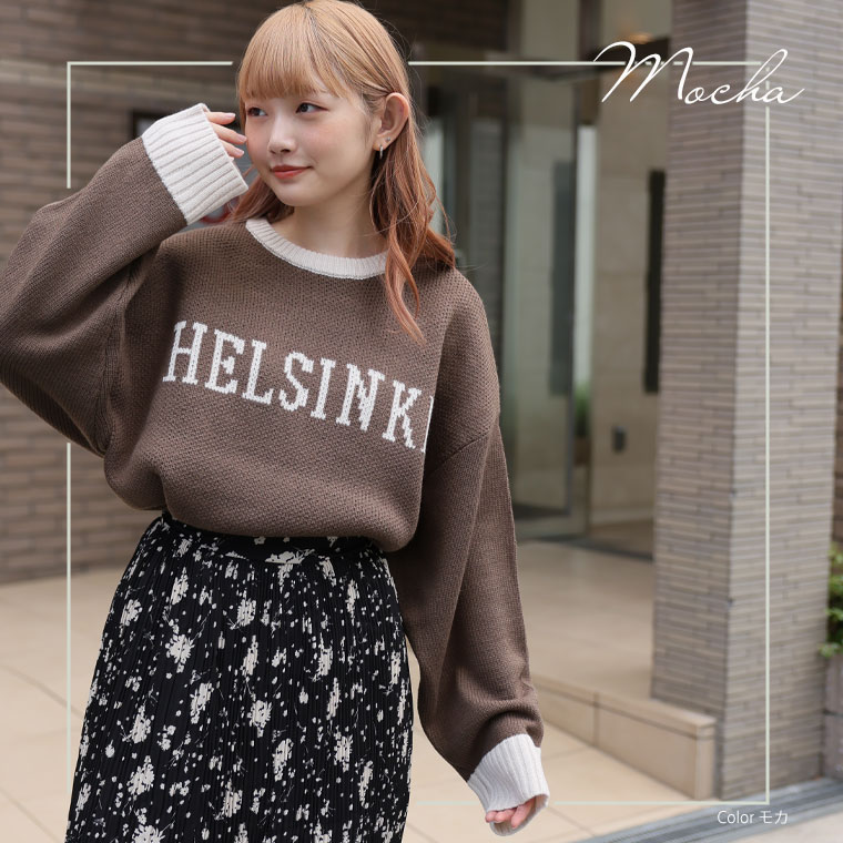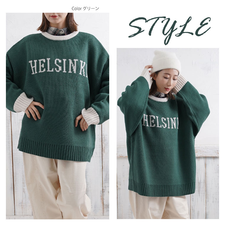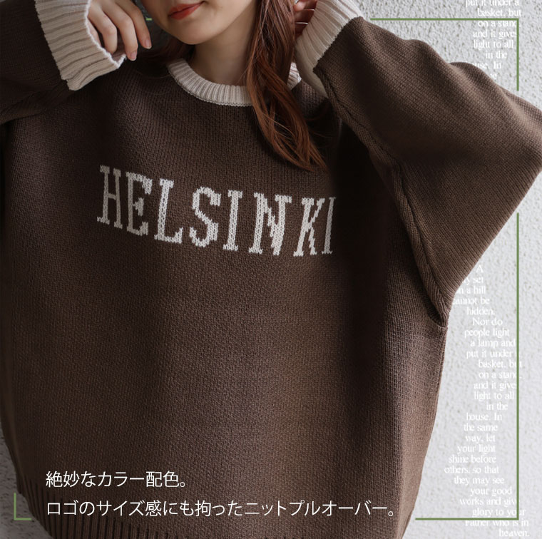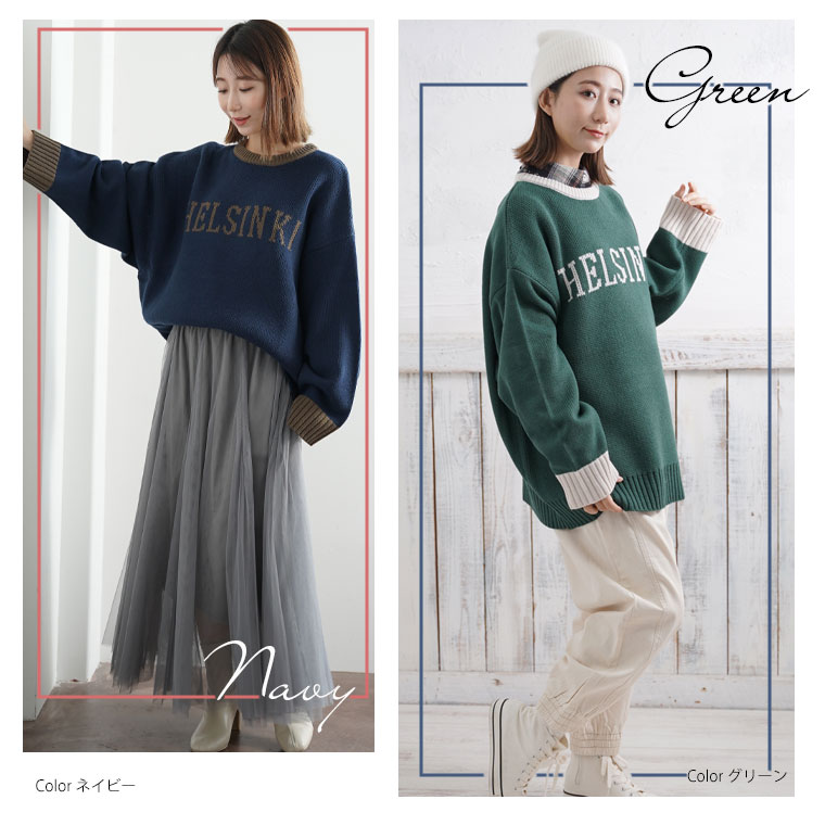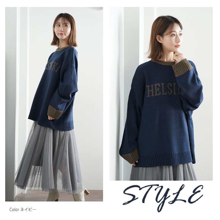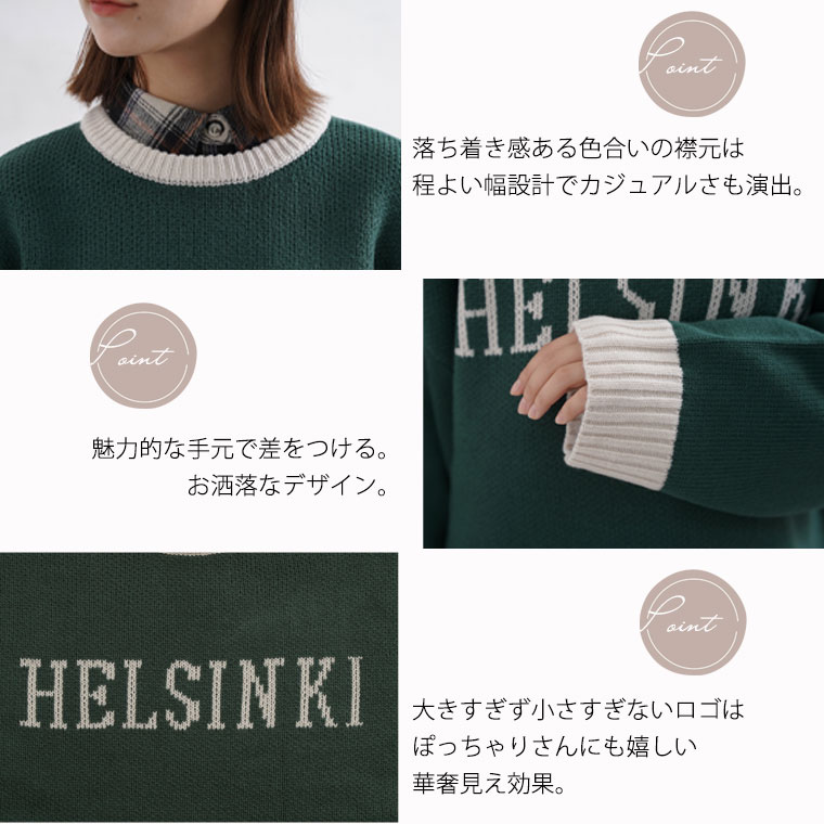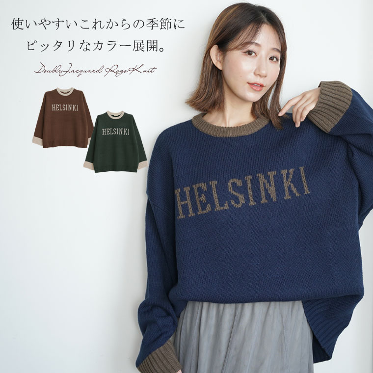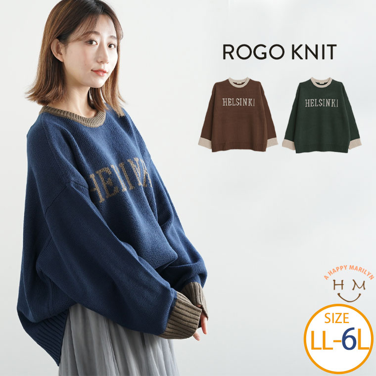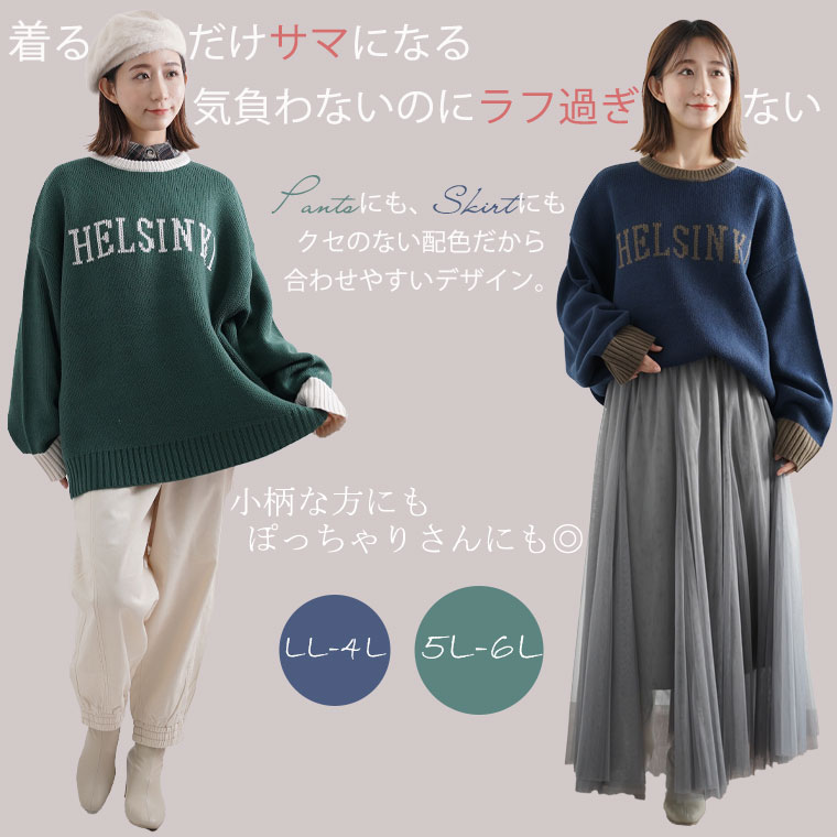 トップス ニット セーター LL 3L 4L 5L 6L 秋 秋物 秋服 冬 冬物 冬服 ぽっちゃり ゆったり ガーリー カジュアル ナチュラル プラスサイズ ダブルジャガード ロゴ ニットプルオーバー