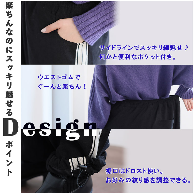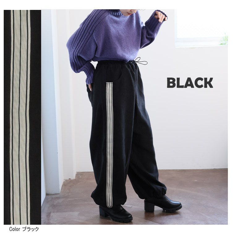ボトムス イージーパンツ LL 3L 4L 冬 冬物 冬服 ぽっちゃり ゆったり ラインパンツ ジャージ スポーティ ルーズパンツ かわいい おしゃれ カジュアル ナチュラル プラスサイズ サイドライン カルゼ起毛 パンツ【ウェストゴム】