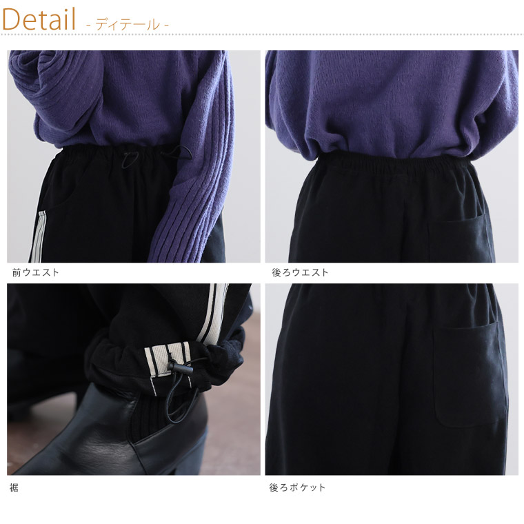■着用感:ちょうどいい、■着丈:床につく、■バスト:-、■腕回り:-、■袖口:-、■袖丈:-、■首回り:-、■ウエスト:ちょうどいい、■ヒップ:ちょうどいい、■太もも:ちょうどいい ●カッコよく着られます。裾を絞れるので好みによって形を変えられるのも良いです。