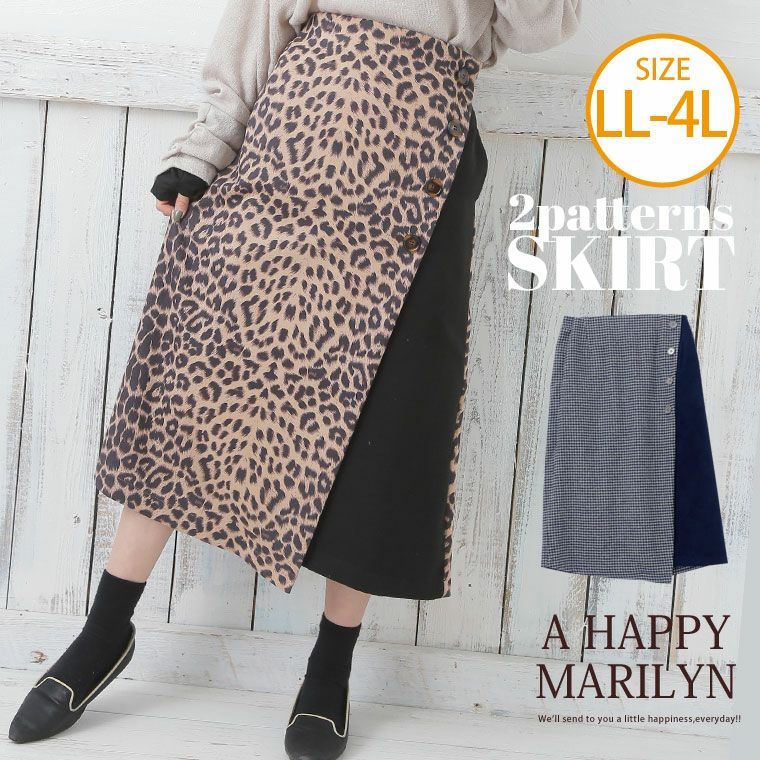 季節感たっぷりな2柄から選べる異素材仕様のラップ風スカート!!