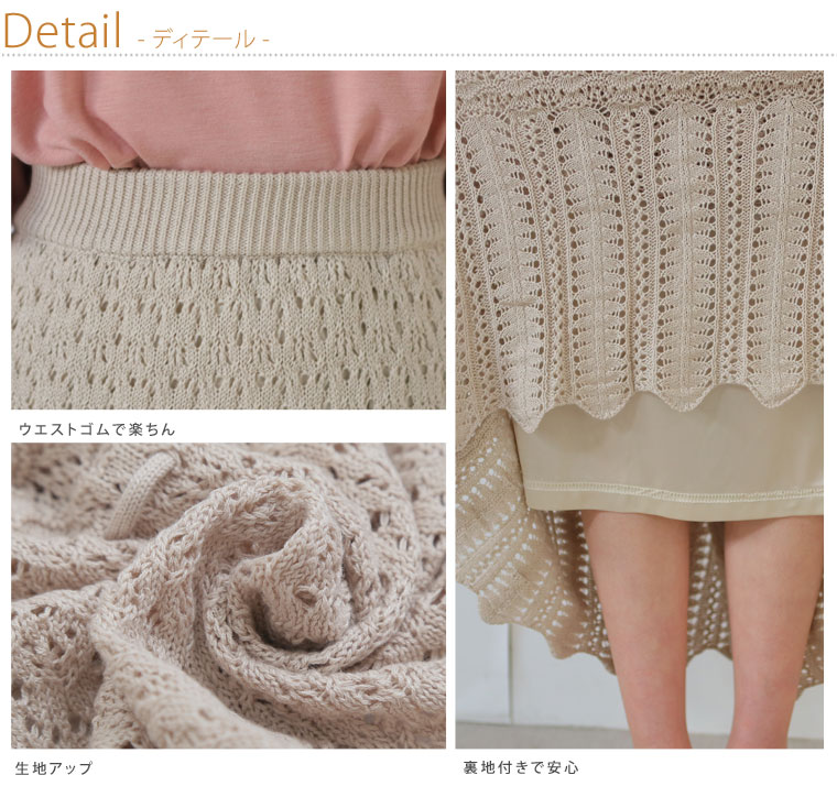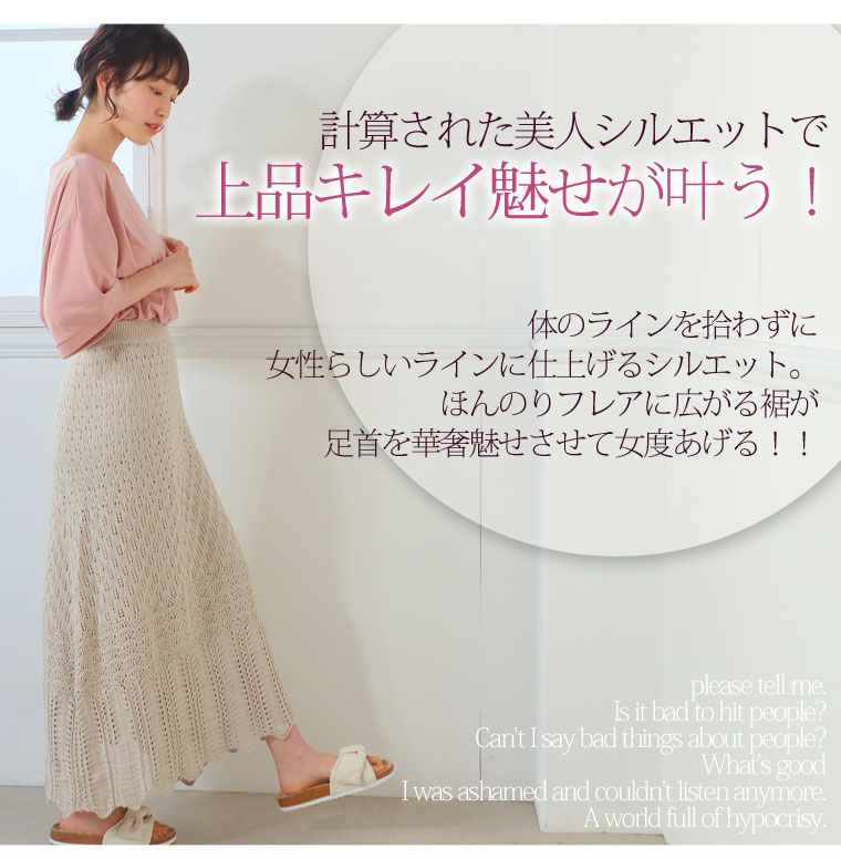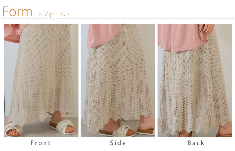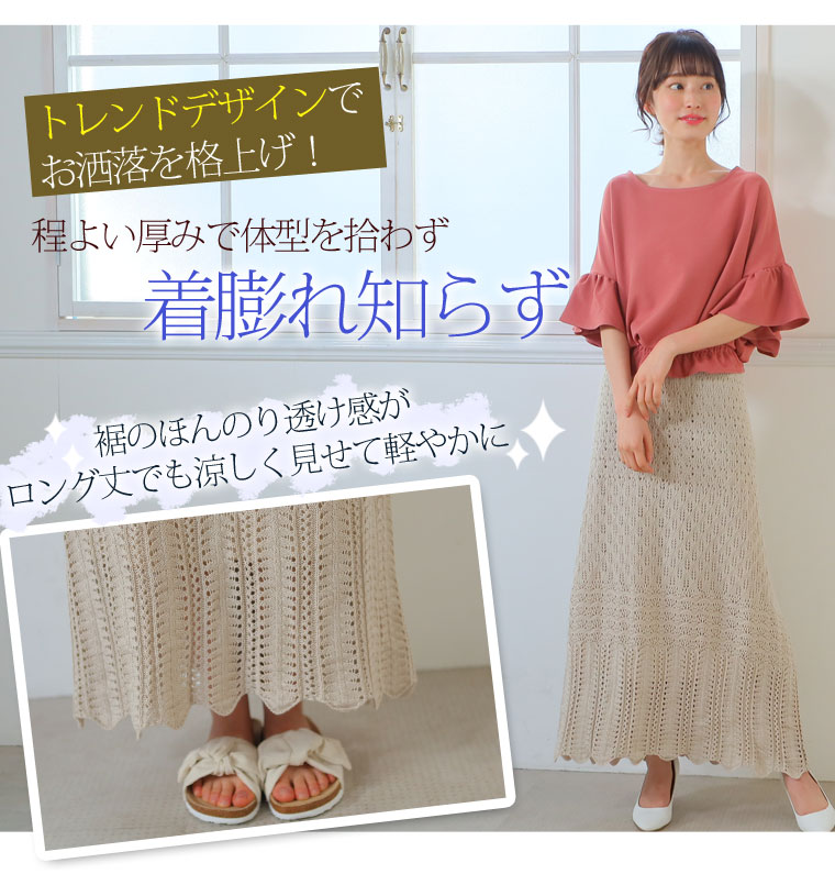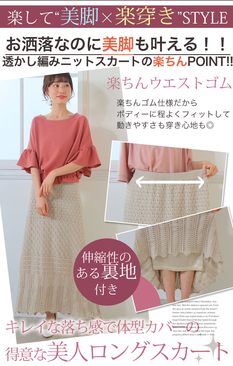 4. 大きいサイズ 透かし編み サマーニット ロングスカート