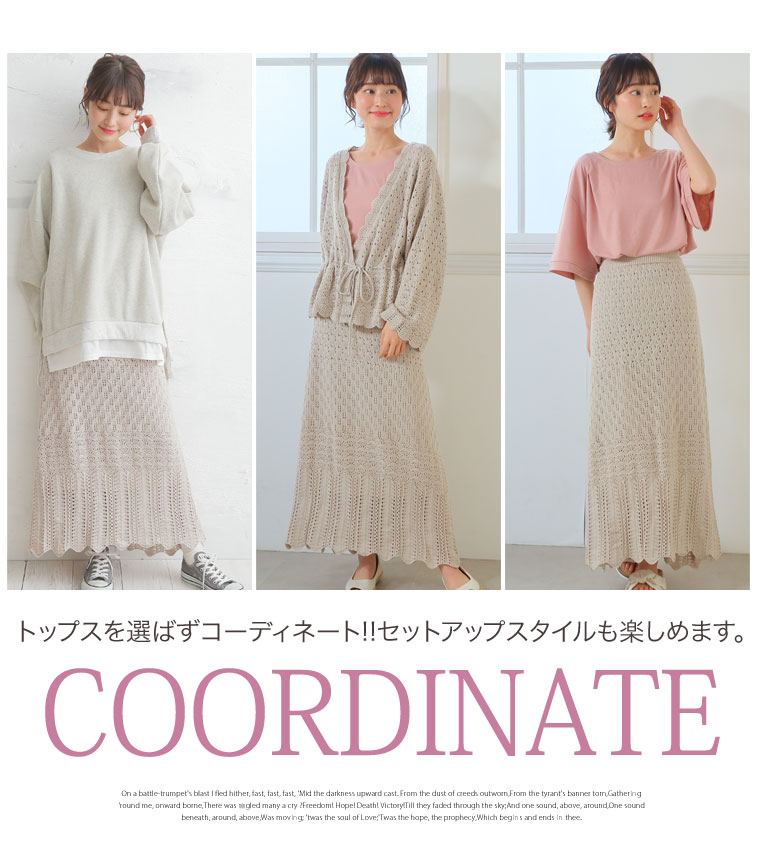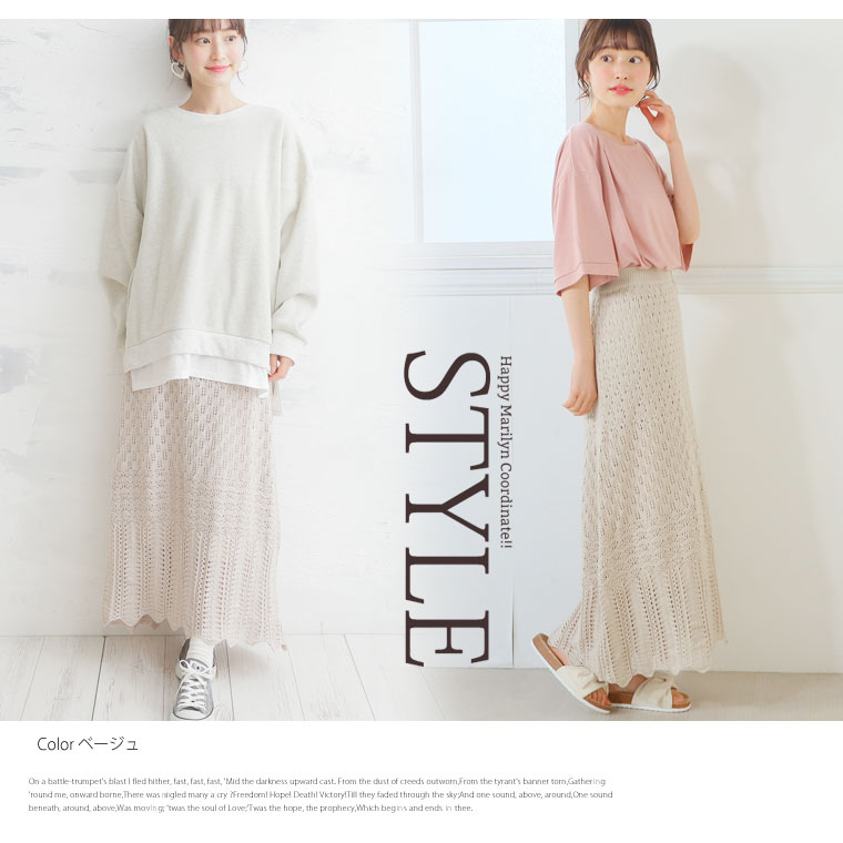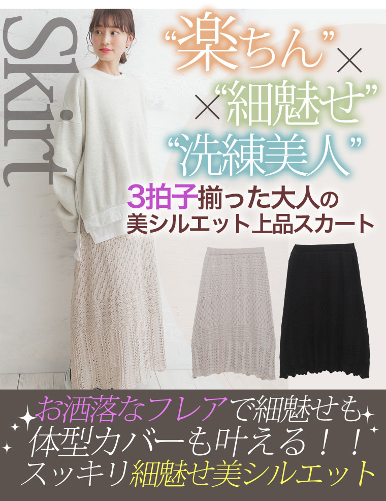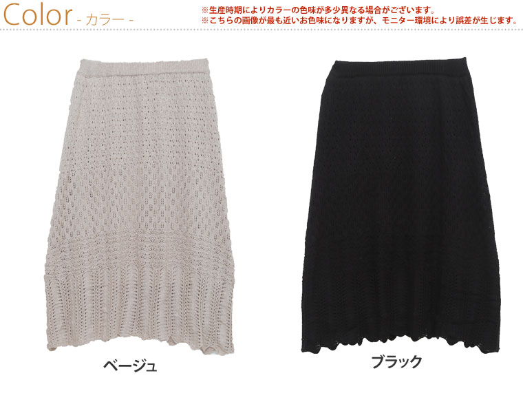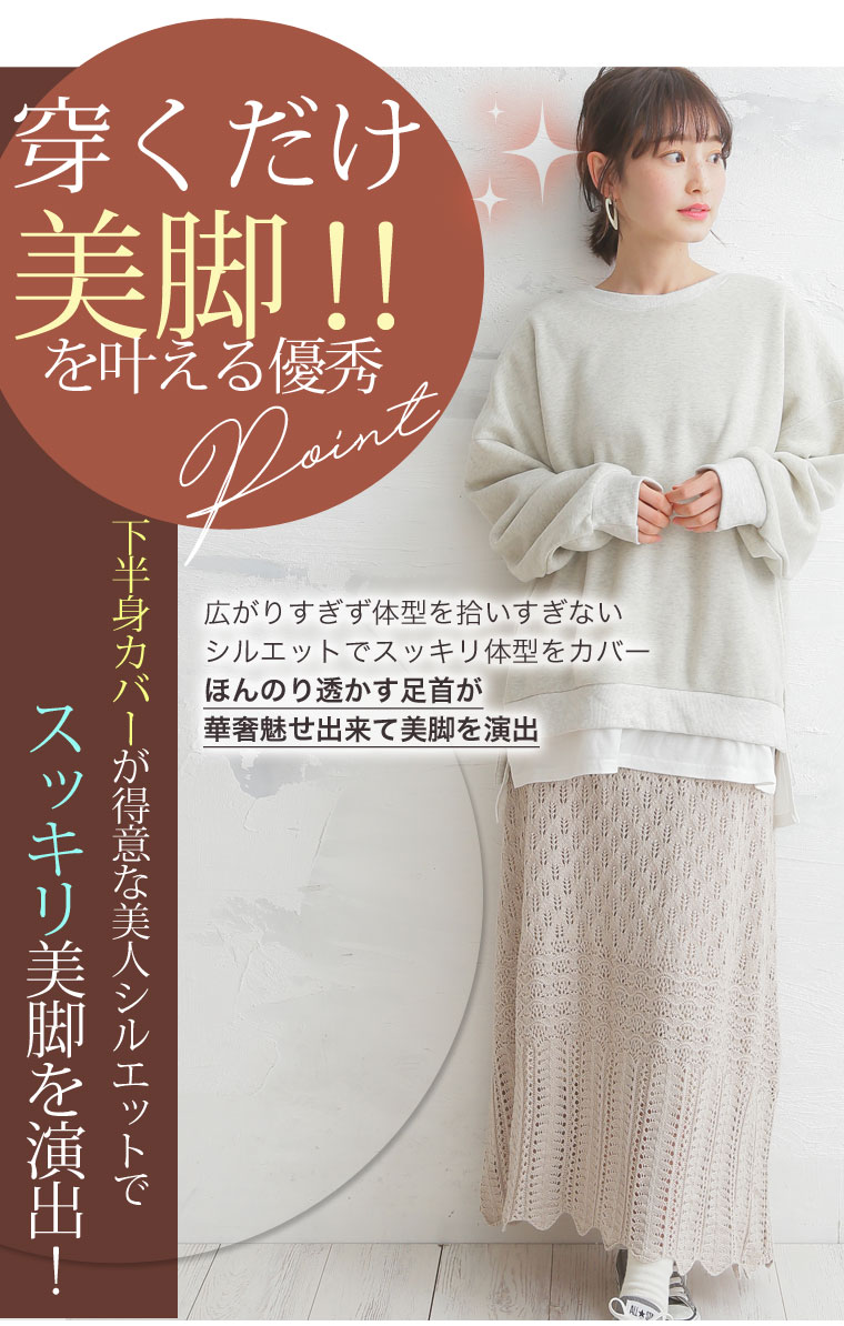 4. 大きいサイズ 透かし編み サマーニット ロングスカート
