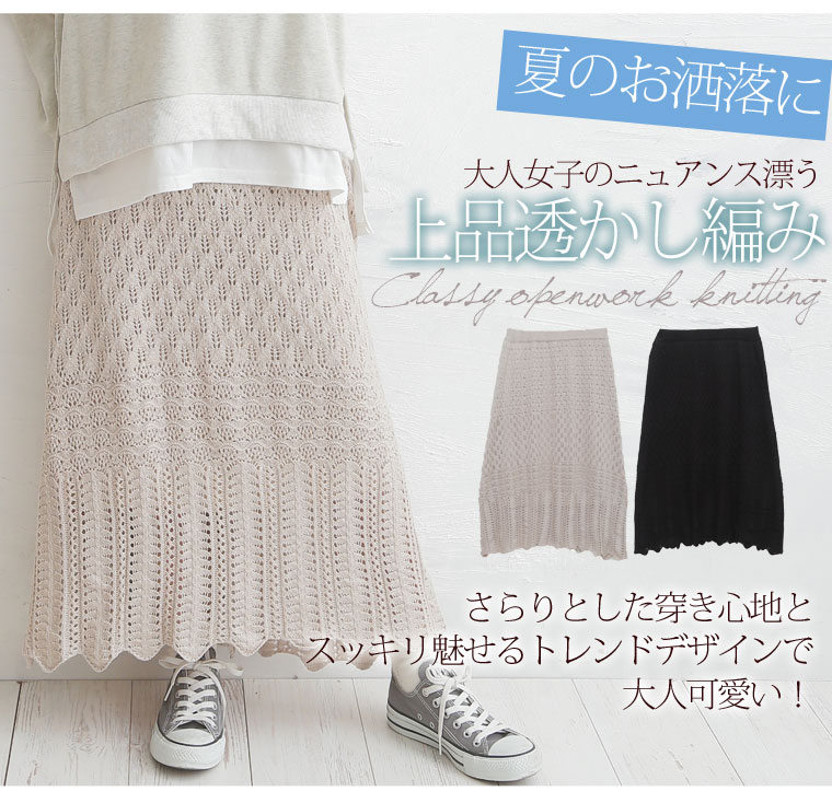 大きいサイズ 透かし編み サマーニット ロングスカート