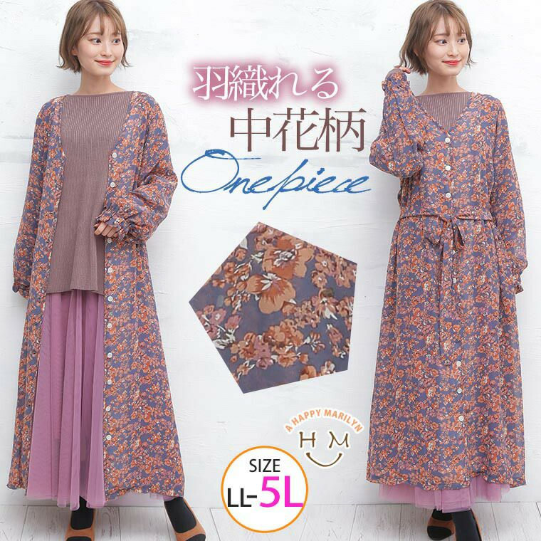 羽織っても使える花柄ワンピース