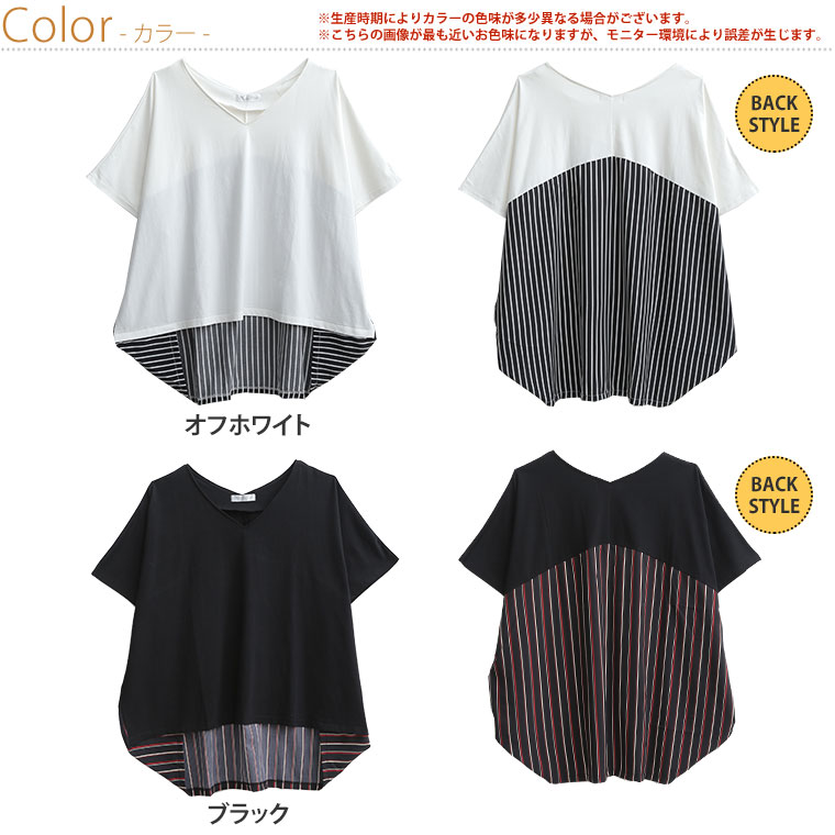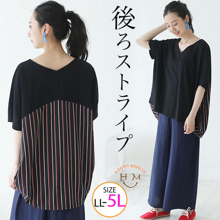カットソー LL 3L 4L 5L 夏物 夏服 夏用 ぽっちゃり ゆったり かわいい おしゃれ カジュアル プラスサイズ きれいめ 上品 ガーリー ストライプ 切替 Vネック プルオーバー