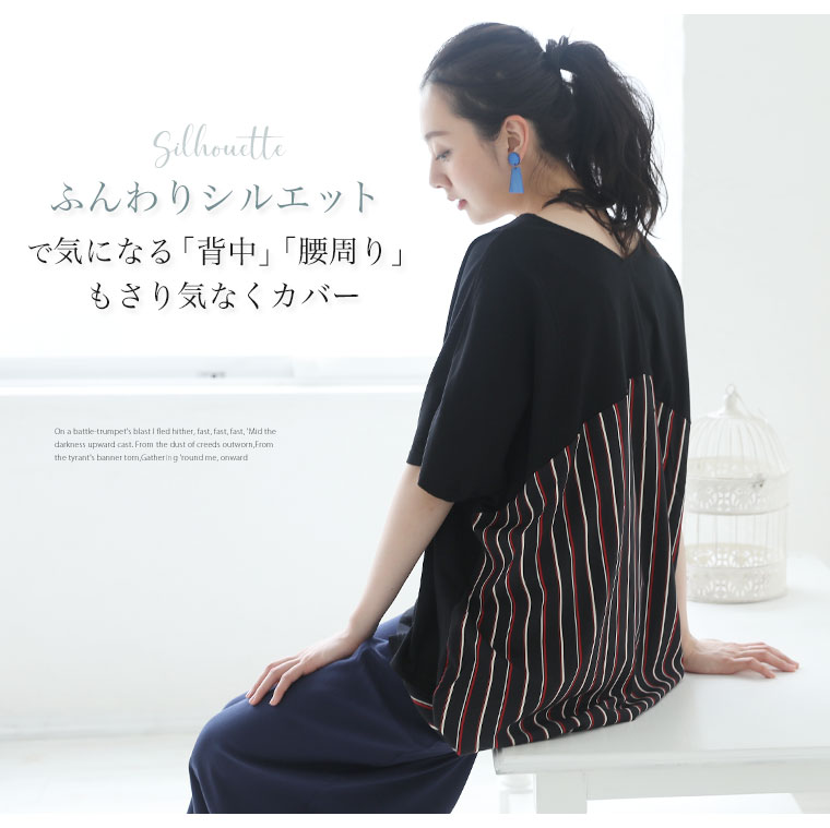 うしろ姿がかわいいストライプ柄トップス