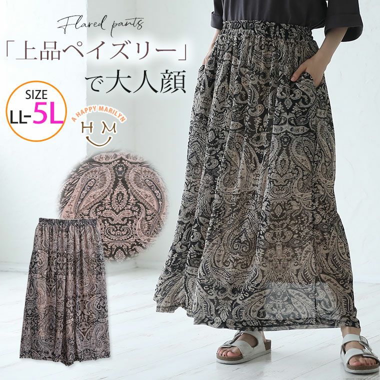 大人のペイズリー柄のふんわりフレアパンツ