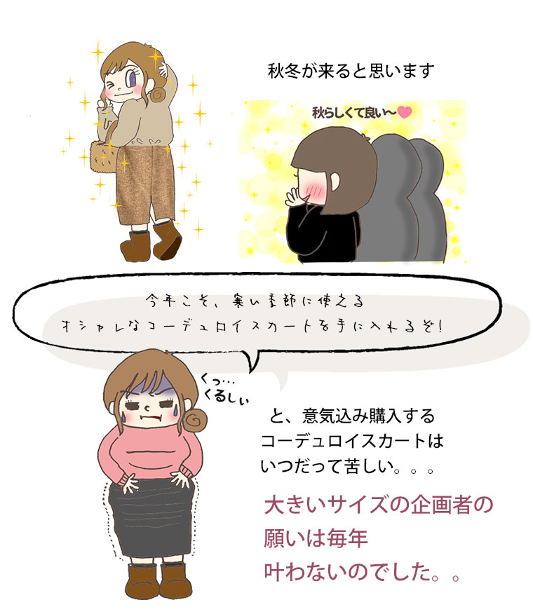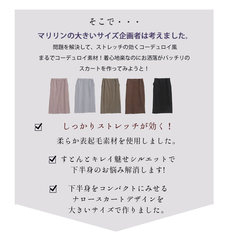 大きいサイズ着用の企画者が考えました!動きやすくてすらっと魅せ叶うスカート。