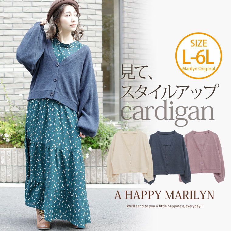 ふんわり柔らかなニットソー素材で季節感たっぷり♪パフ袖カーディガン