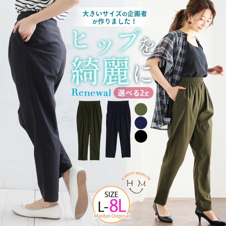 オリジナル ボトムス テーパードパンツ LL 3L 4L 5L 6L 7L 8L 夏 夏物 夏服 ぽっちゃり ゆったり お腹 お尻 腰周り プルオンパンツ 大きいサイズの企画者が作りました! ヒップ綺麗魅せ イージーパンツ【ストレッチ】 | 大きいサイズの通販ならハッピーマリリン