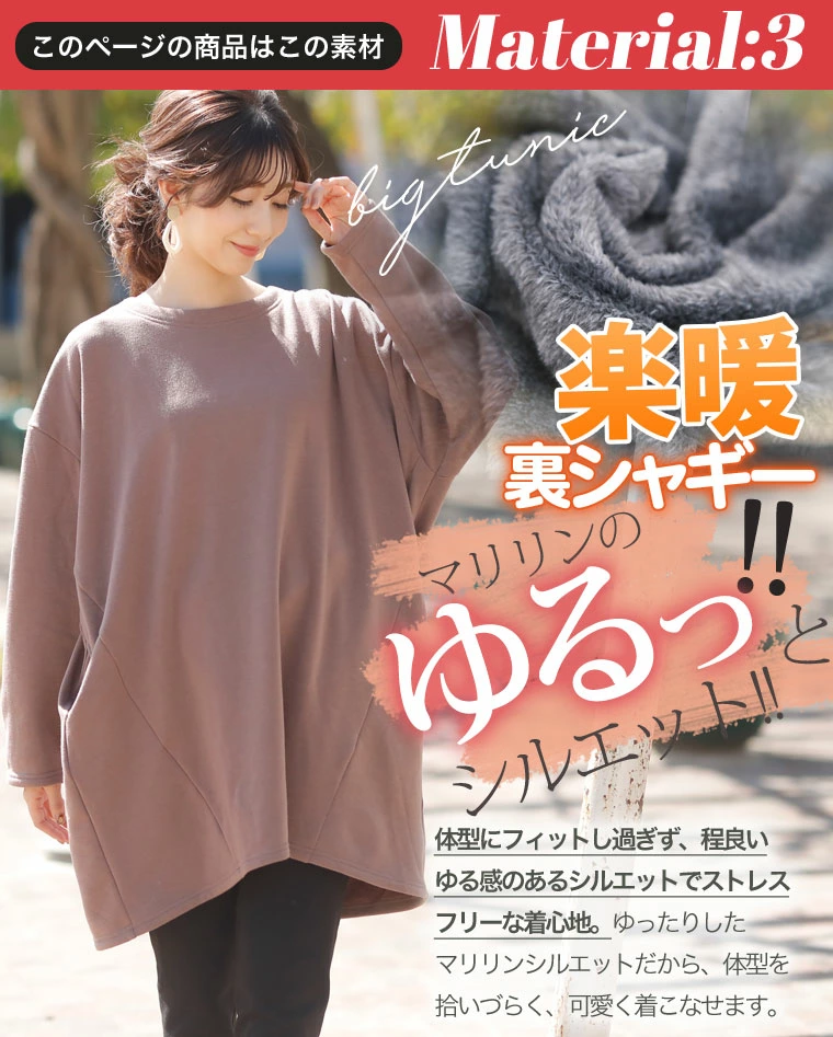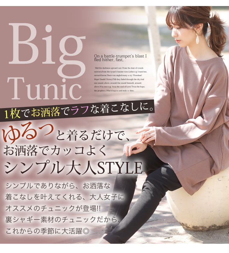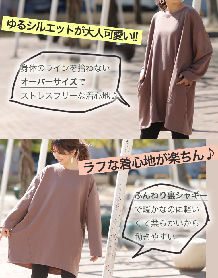 ゆったりサイズでラフな着こなし♪シンプル裏シャギーチュニック