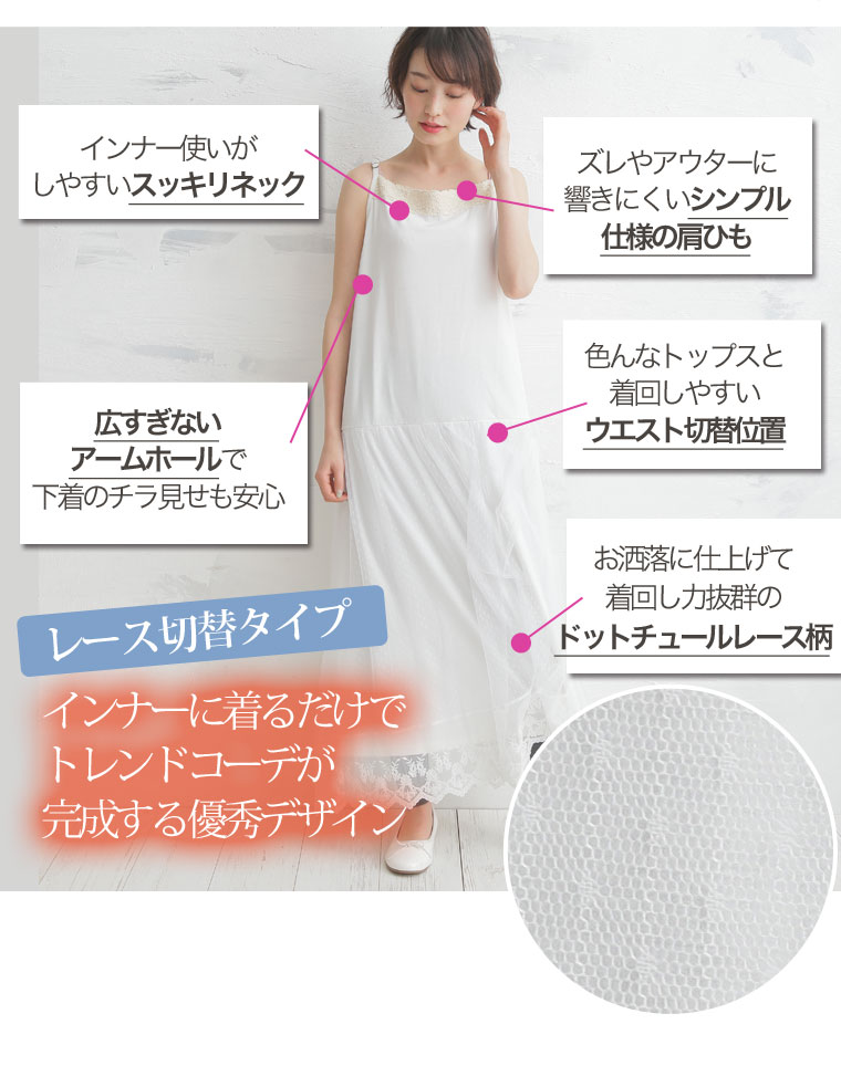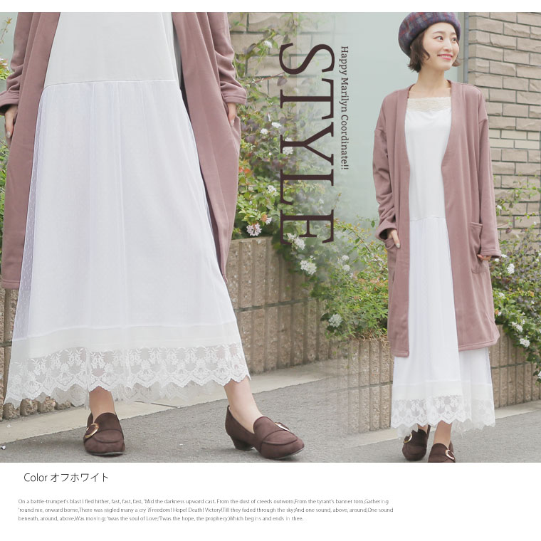 裾レースで華やかスタイル!!レイヤードが決まるレースペチワンピース