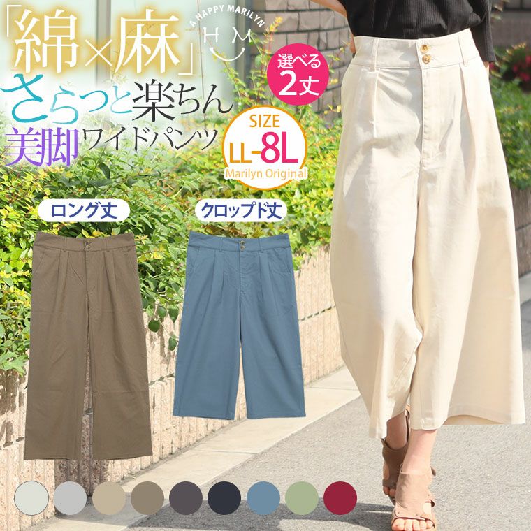 さらり心地よい嬉しい2丈!いつだって楽ちん美脚の綿麻ワイドパンツ