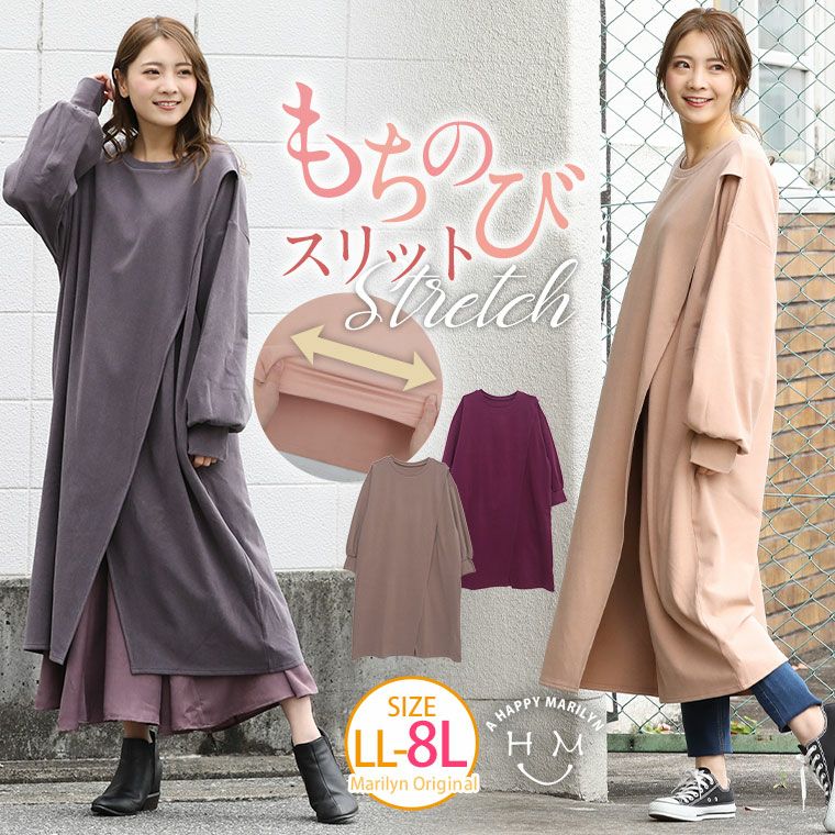 157cm、モカの5L-6L購入。 おしり周りや腰周りが多少小さくても、この変わったデザインのおかげで広がってキツいとか無いし、レギンスを履いても太ももの太さを隠せて良かった!! 生地もモッチリして手触りが良くかなり伸縮性がある! 中は暖かいし、袖に指穴も付いてるので可愛い!色違いも欲しい!