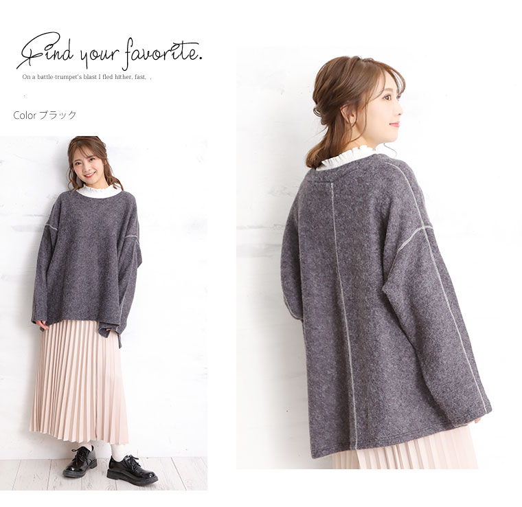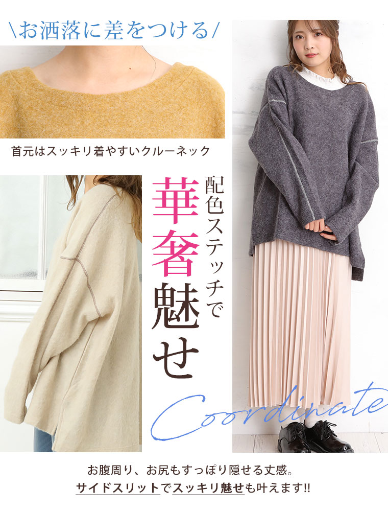 配色ステッチが可愛い!ふわふわあったかニットソー