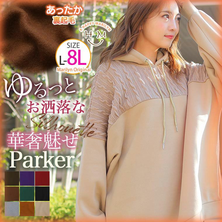 オリジナル トップス パーカ LL 3L 4L 5L 6L 7L 8L 春 春物 春服 ぽっちゃり ゆったり お腹 胸周り 二の腕カバー 腰周り 長袖 かわいい おしゃれ カジュアル ゆるっとラフな ケーブル使い 裏起毛 パーカー | 大きいサイズの通販ならハッピーマリリン