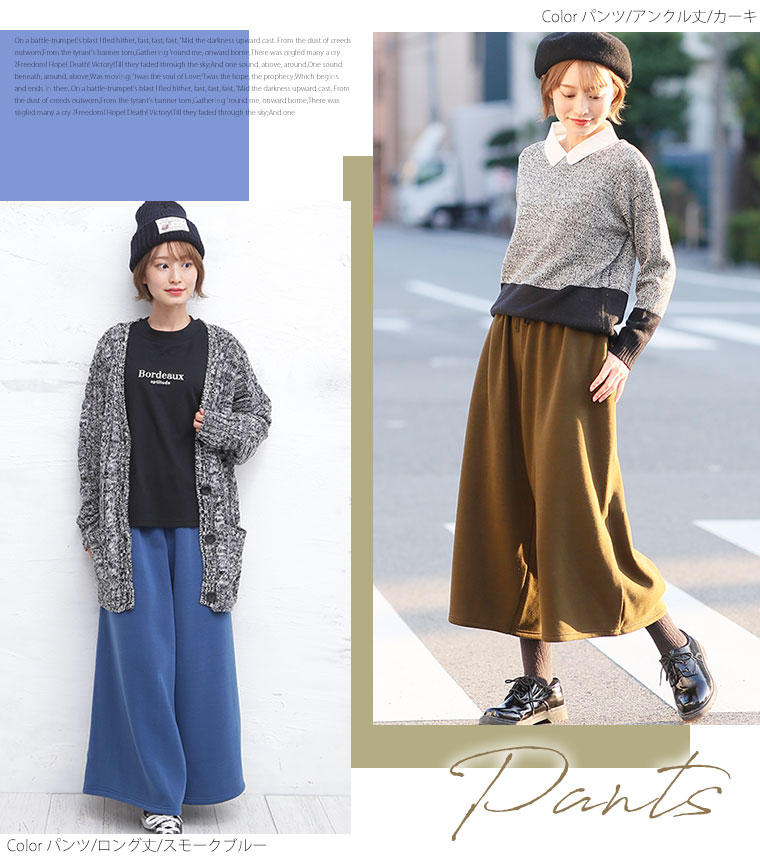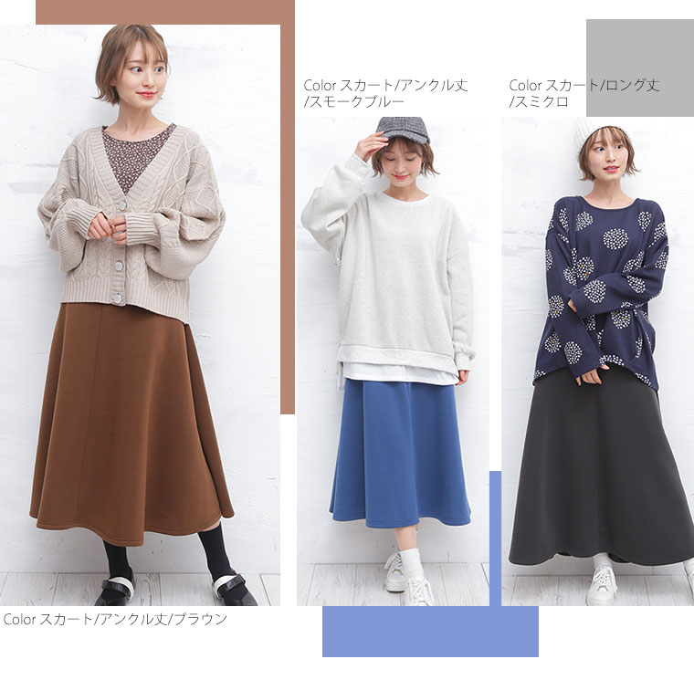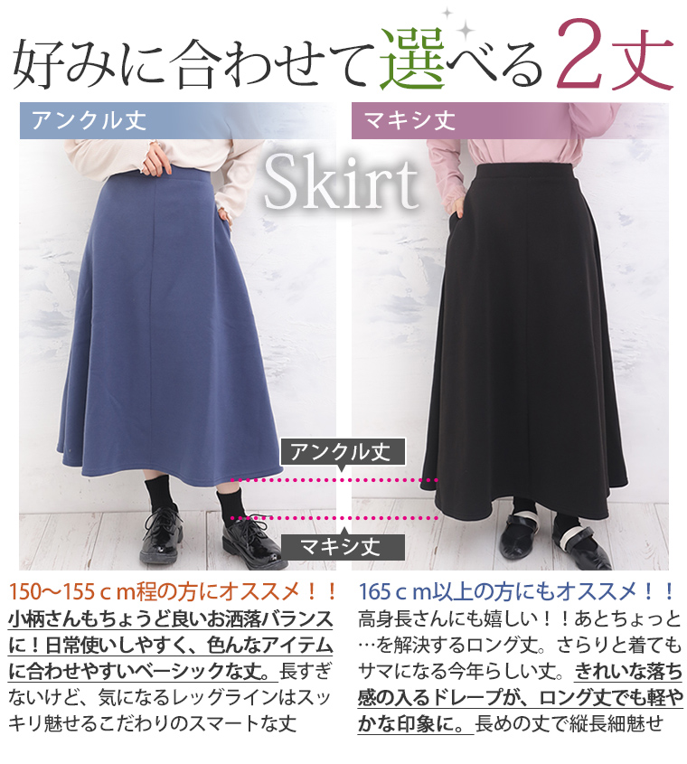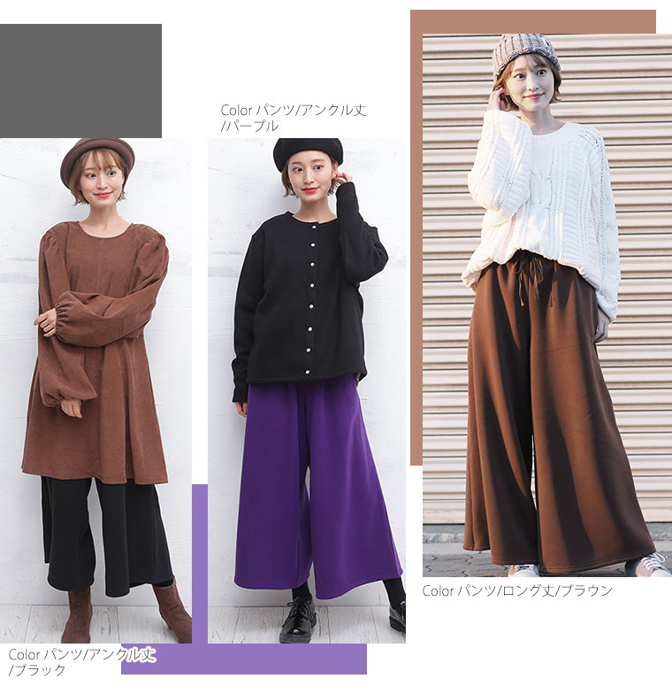 3. 大きいサイズ 新色追加!! 選べる身長別&デザイン ゆるっと楽ちん 裏起毛 フレアスカート & ワイドパンツ