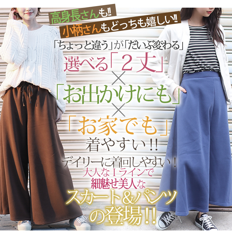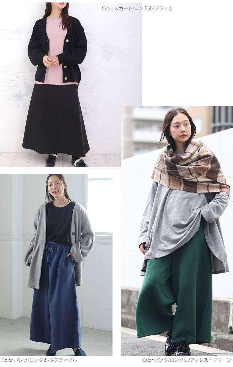 6. 大きいサイズ 新色追加!! 選べる身長別&デザイン ゆるっと楽ちん 裏起毛 フレアスカート & ワイドパンツ