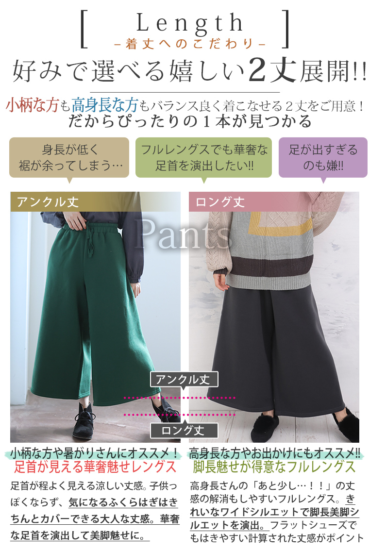 選べる身長別&デザイン ゆるっと楽ちん 裏起毛フレアスカート&ワイドパンツ
