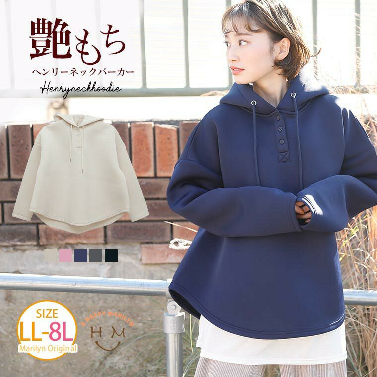 オリジナル パーカ アウター LL 3L 4L 5L 6L 7L 8L 春 春物 春服 ぽっちゃり ゆったり お腹 胸周り 二の腕カバー 腰周り 長袖 かわいい おしゃれ カジュアル ダイバー素材 ヘンリーネック Aライン パーカー | 大きいサイズの通販ならハッピーマリリン